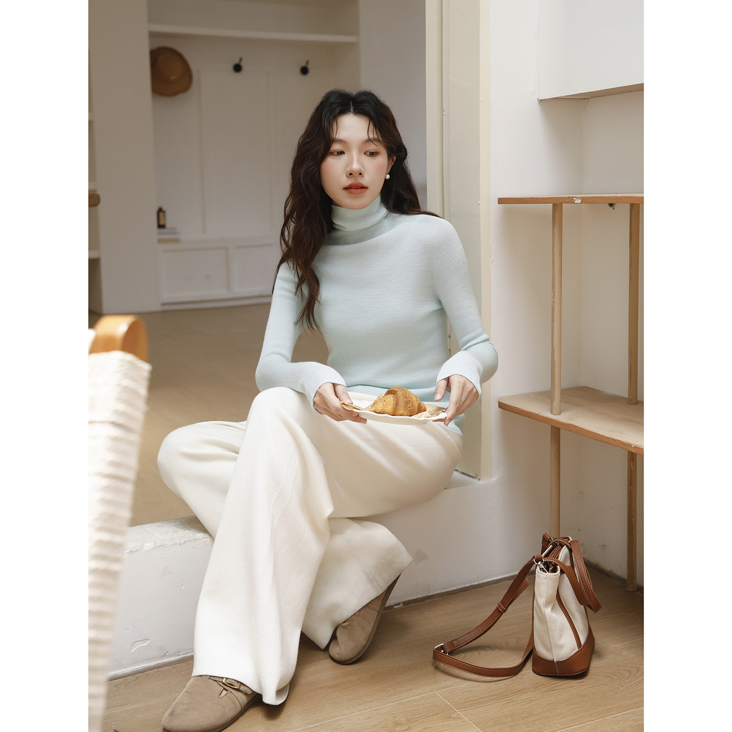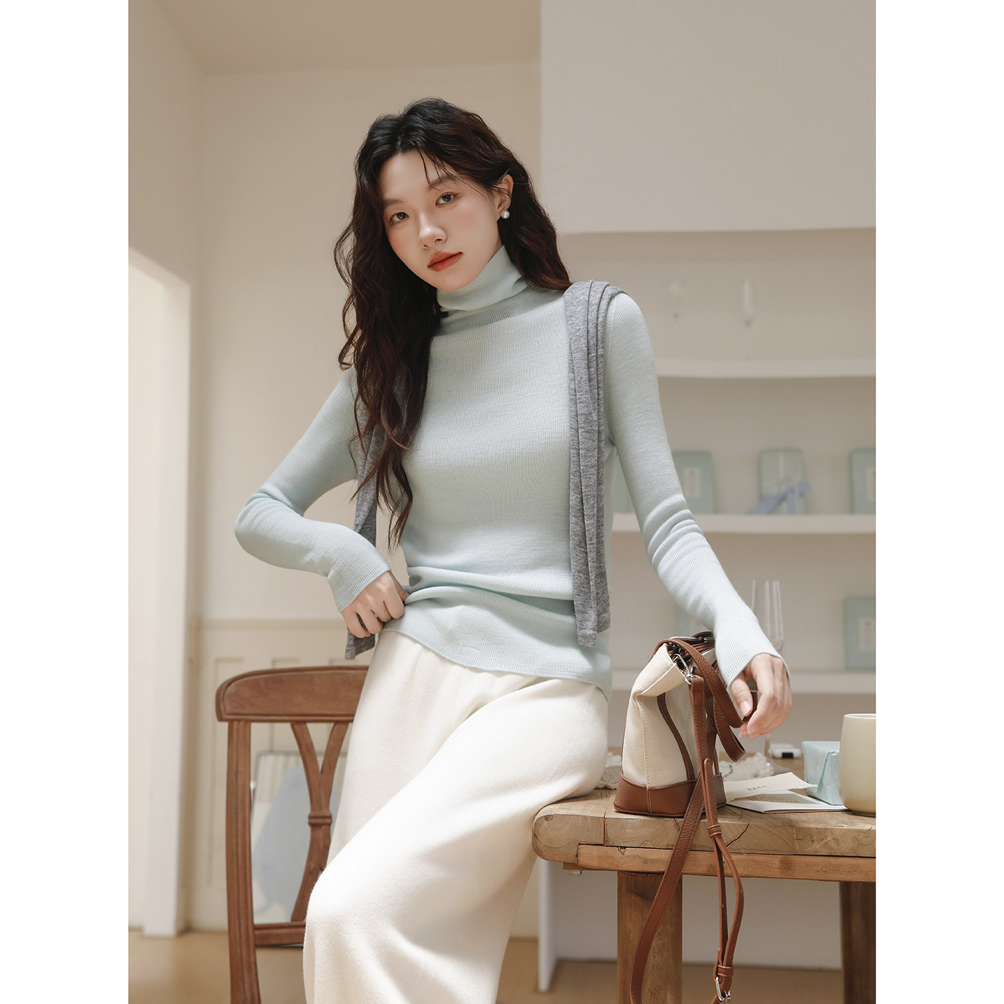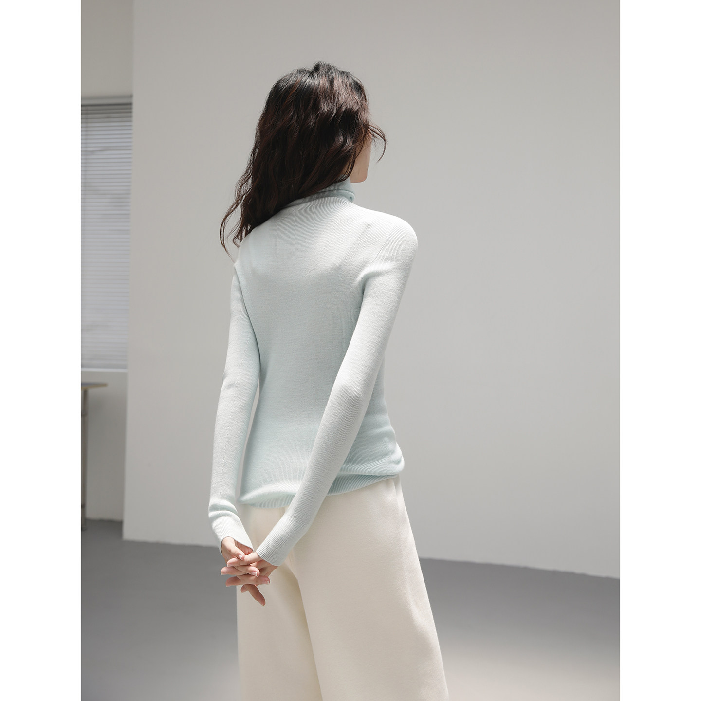 高领毛衣女款2026新款修身堆堆领内搭无缝一体48支绵羊毛打底衫秋