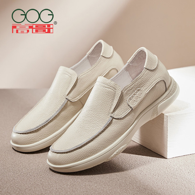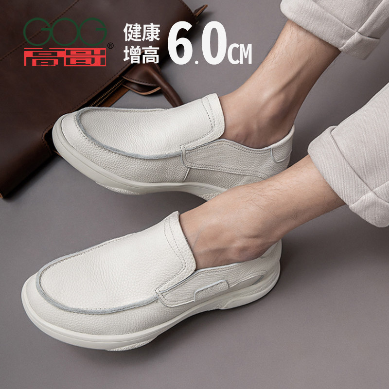 高哥内增高男鞋春季真皮套脚休闲鞋子男士一脚蹬商务隐形增高皮鞋