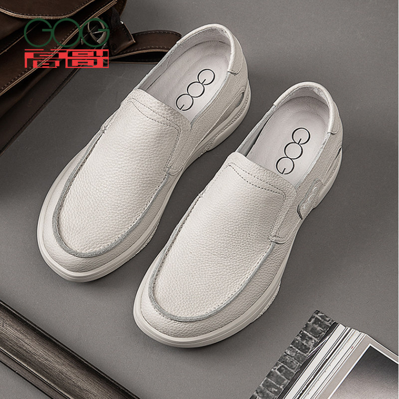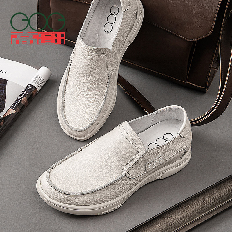 311线报网描述:高哥男士内增高一脚蹬白色皮鞋子