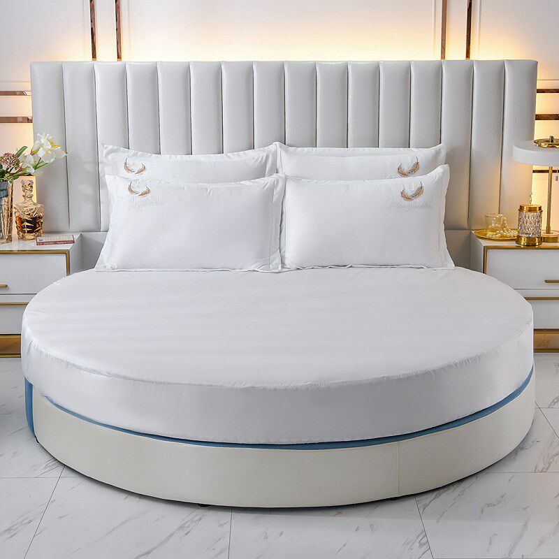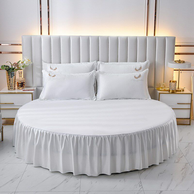 夏季冰丝圆形床上用品四件套2m2.2米圆床裙被套情侣酒店圆床笠4件