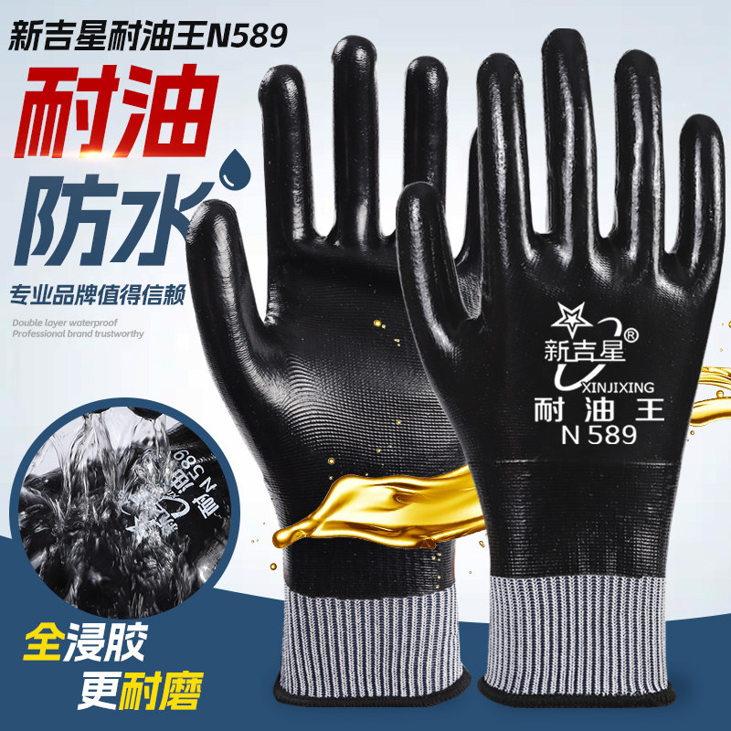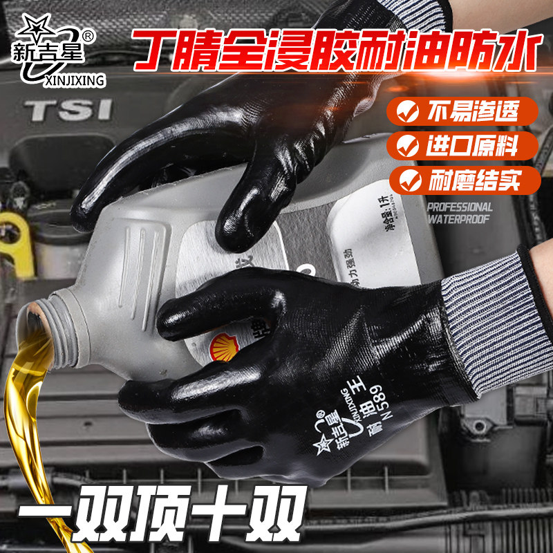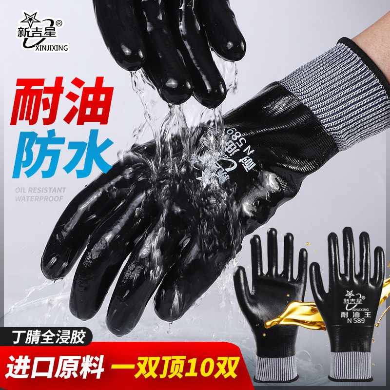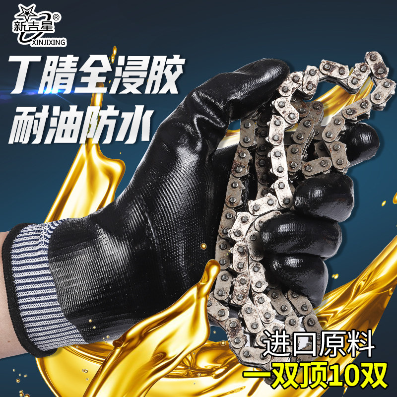 手套劳保耐磨工作丁腈耐油王防水防油劳动干活全胶满挂浸胶加厚男