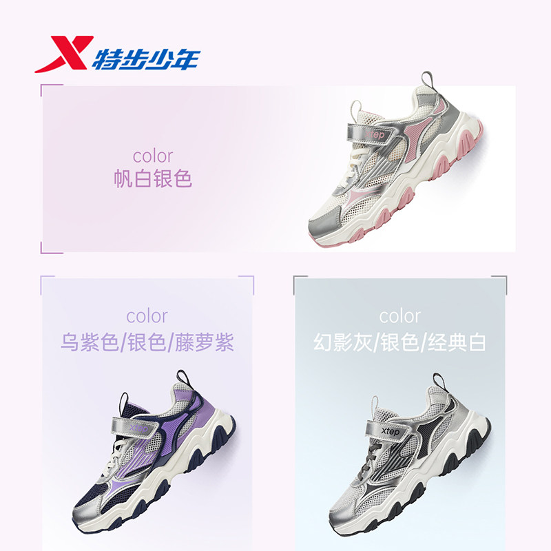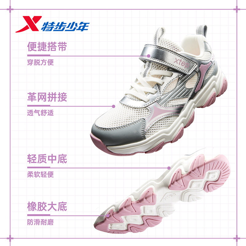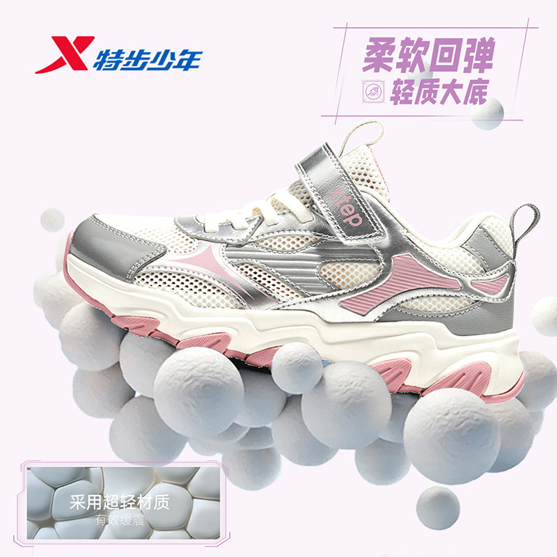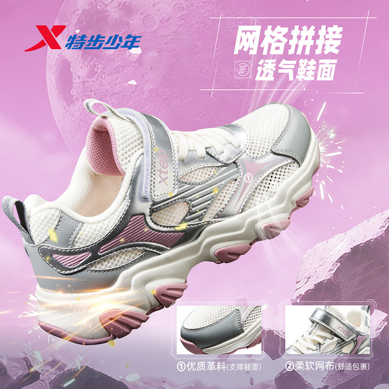 星辰|特步童鞋儿童休闲鞋女童春夏季新款耐磨大童大网透气运动鞋