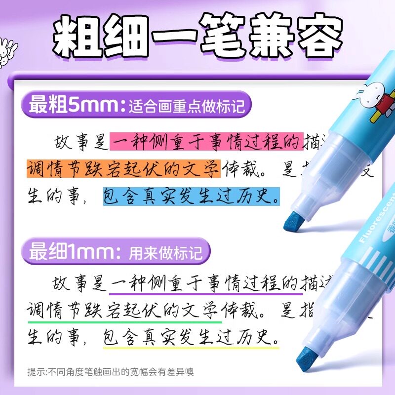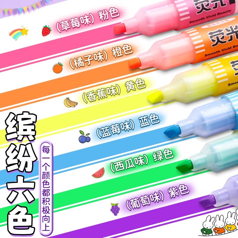 晨光米菲水果香味荧光笔小学生专用划重点标记笔学生用记号笔彩色手抄报初中生高颜值ins风大容量做笔记专用
