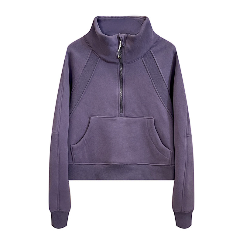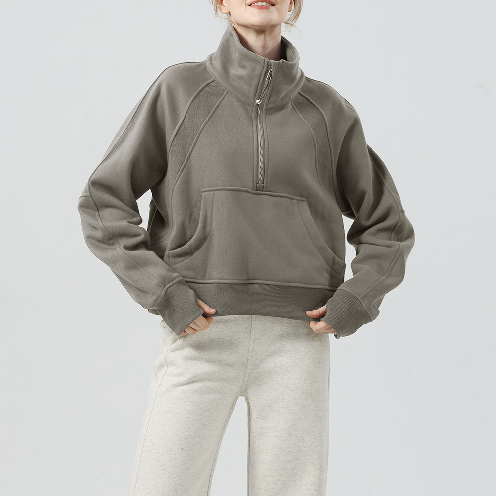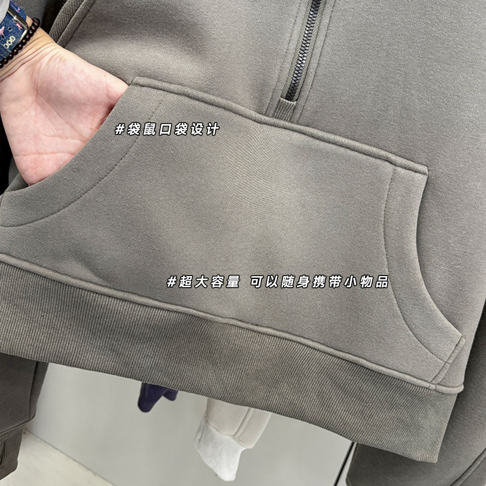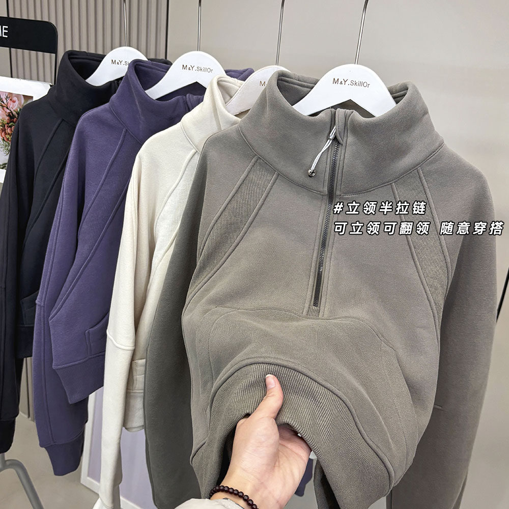 柜上980同款加绒重磅立领卫衣女宽松半拉链短款显瘦运动瑜伽上衣