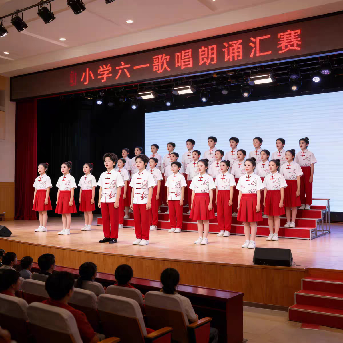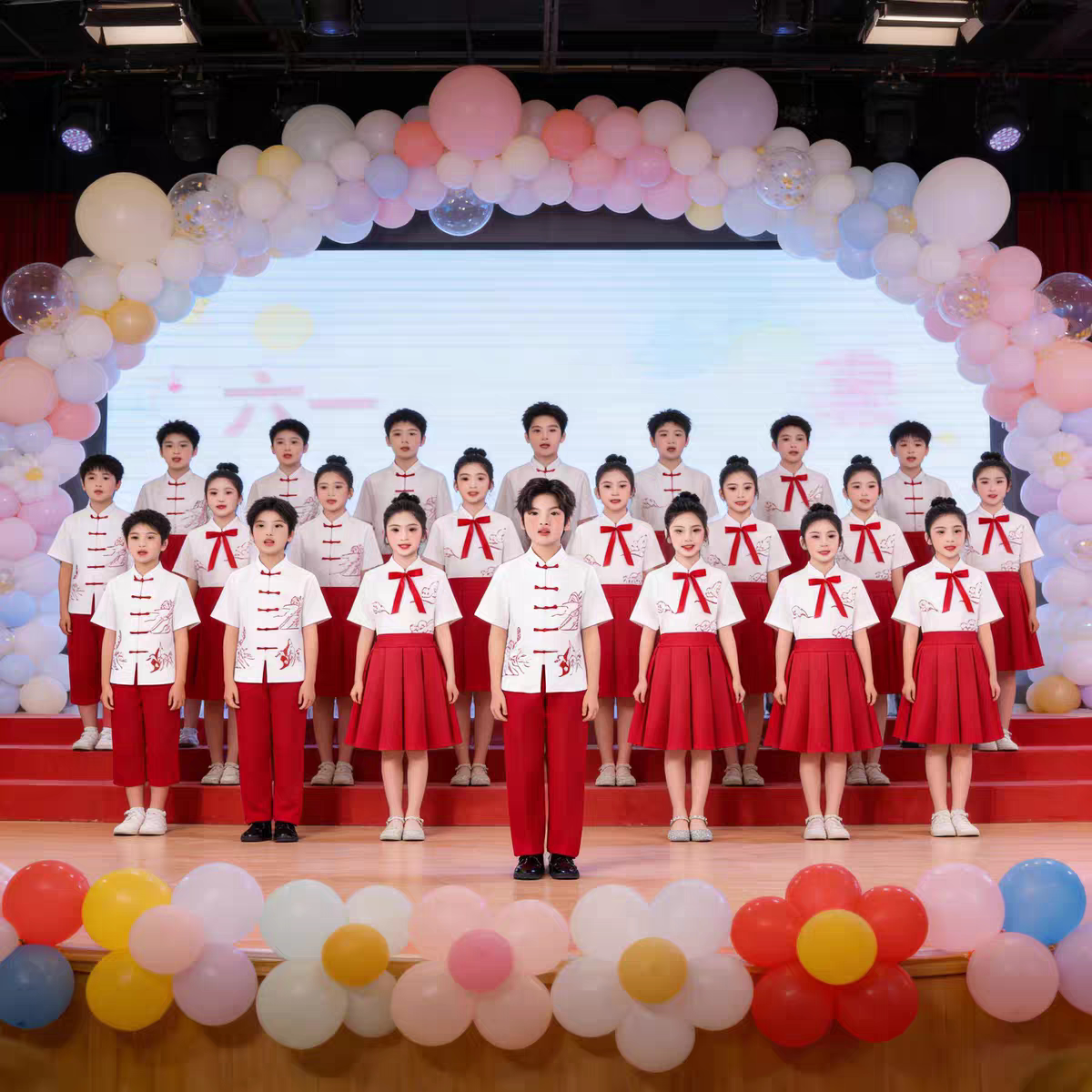 儿童合唱朗诵演出服小学生中国风女童红色爱国演讲红歌比赛礼服装