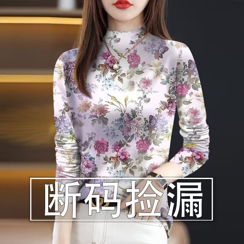 妈妈装中老年加绒加厚半高领打底衫可外穿长袖t恤女打底时尚洋气