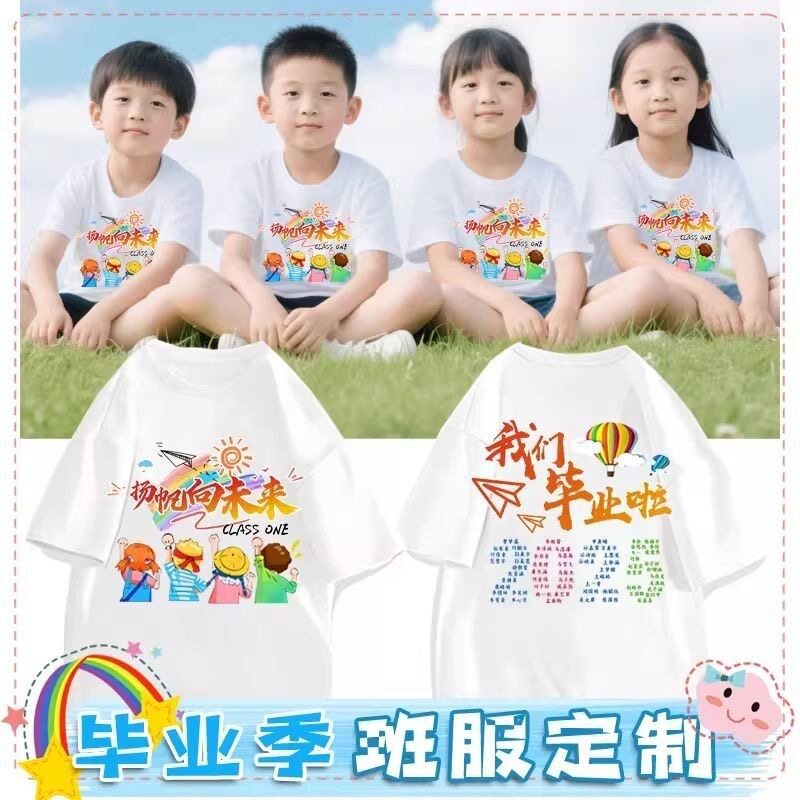 diy定制班服男女童纯棉t恤印字图学校logo手绘扎染短袖模特服装
