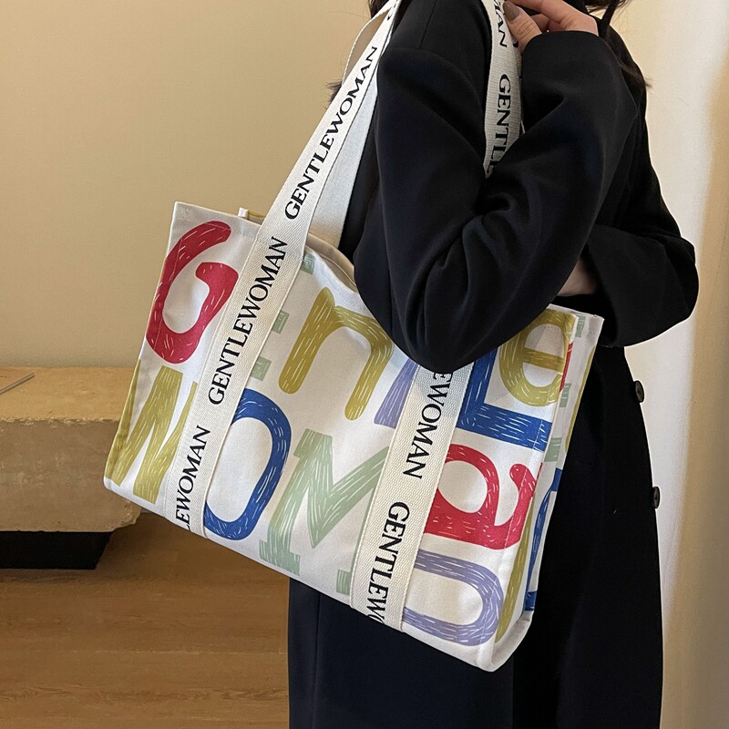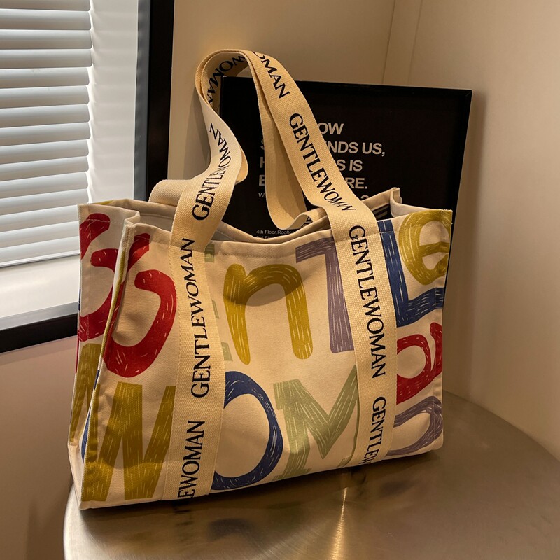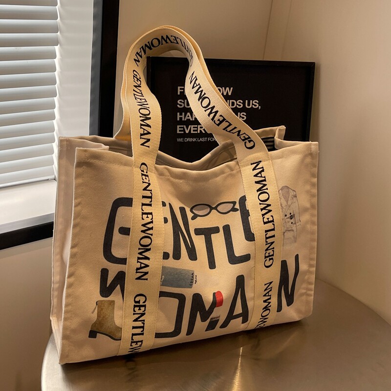 大容量帆布包女夏季外出短途旅行包休闲上班通勤托特包手提购物袋
