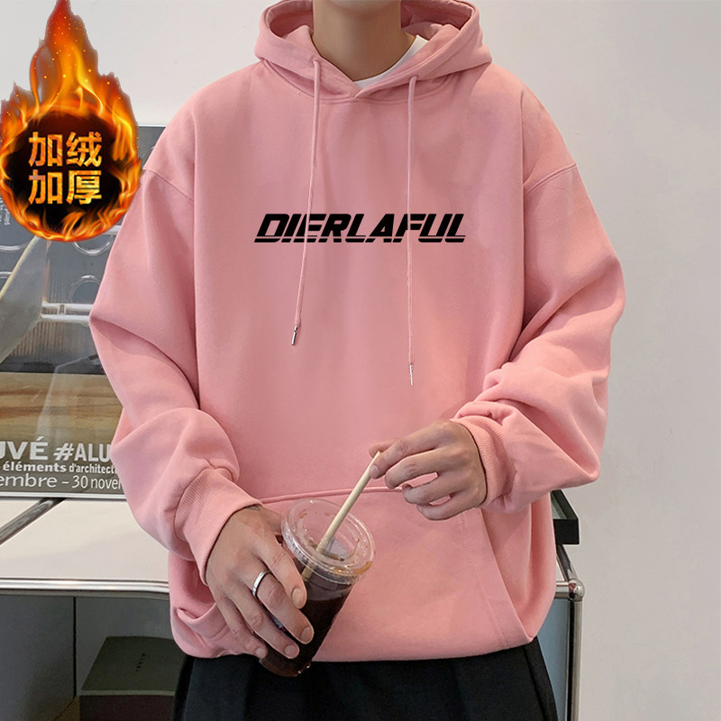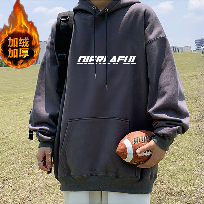 冬季青少年男潮牌加绒卫衣连帽衫初中高中生保暖上衣服带帽秋冬款