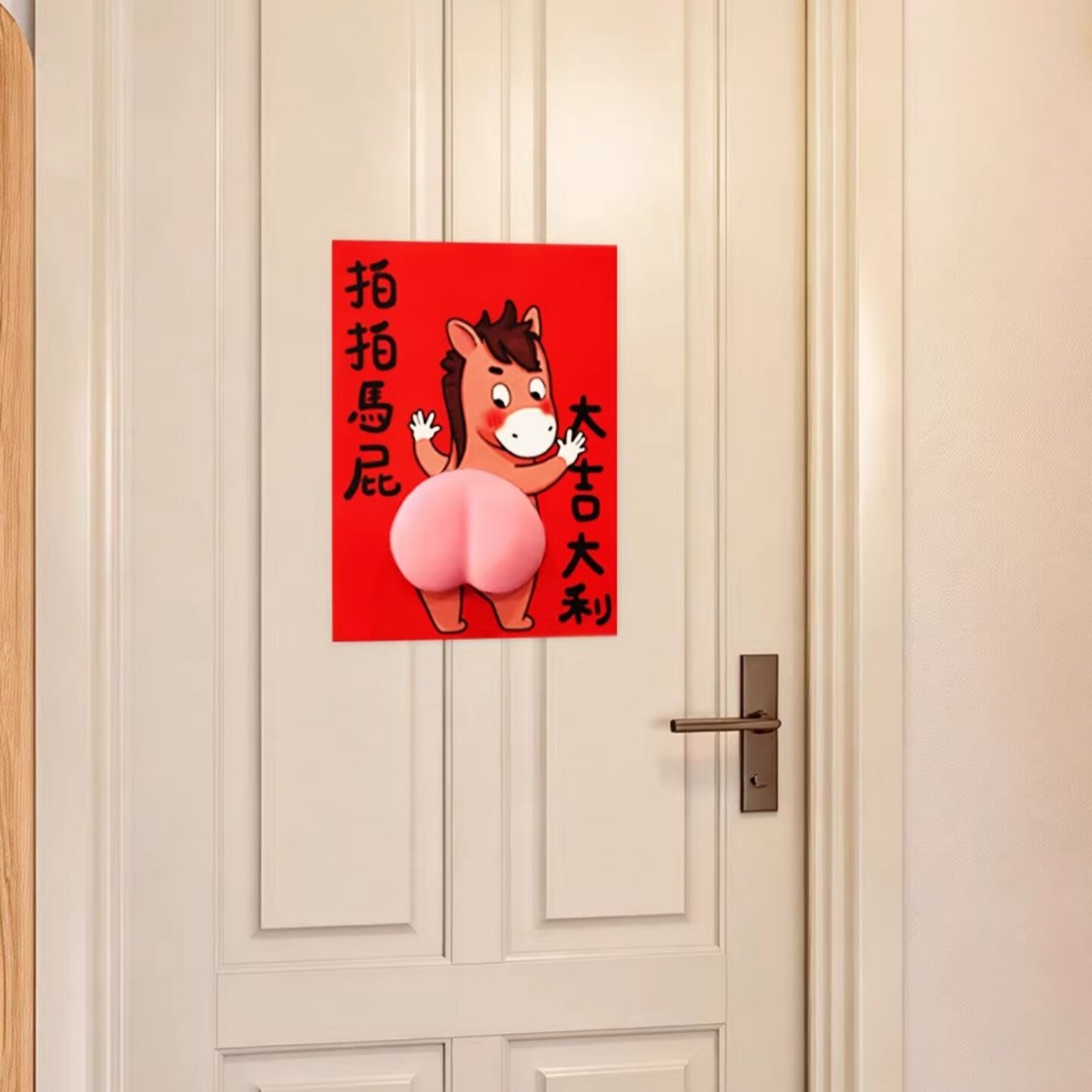 拍拍马屁对联3D立体过年入户家用福字门贴搞笑2026年新年创意装饰