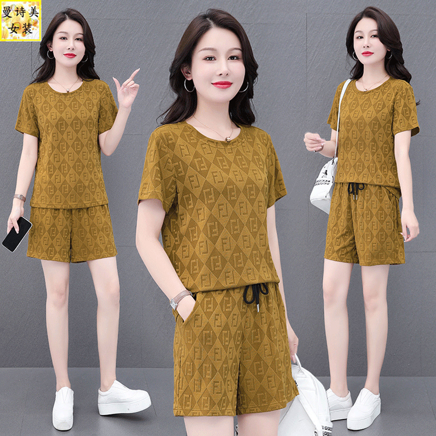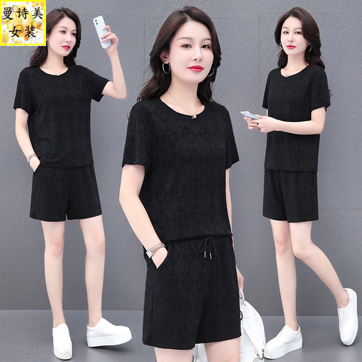 冰丝速时尚短裤运动服套装女士2026新款夏季宽松跑步休闲服两件套