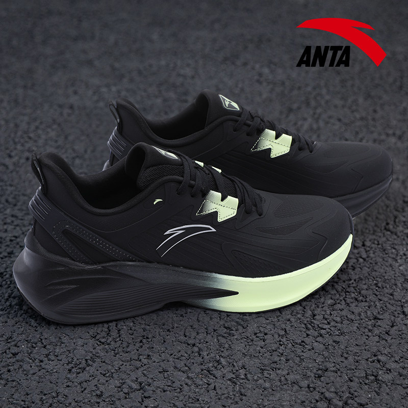 安踏男鞋跑步鞋2026秋季黑色毒刺5皮面防泼水专业减震运动鞋