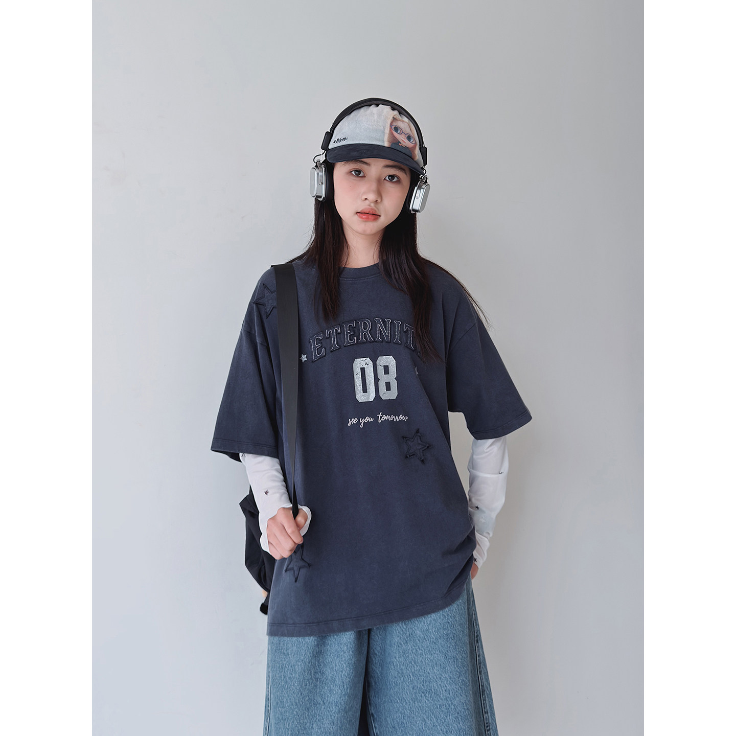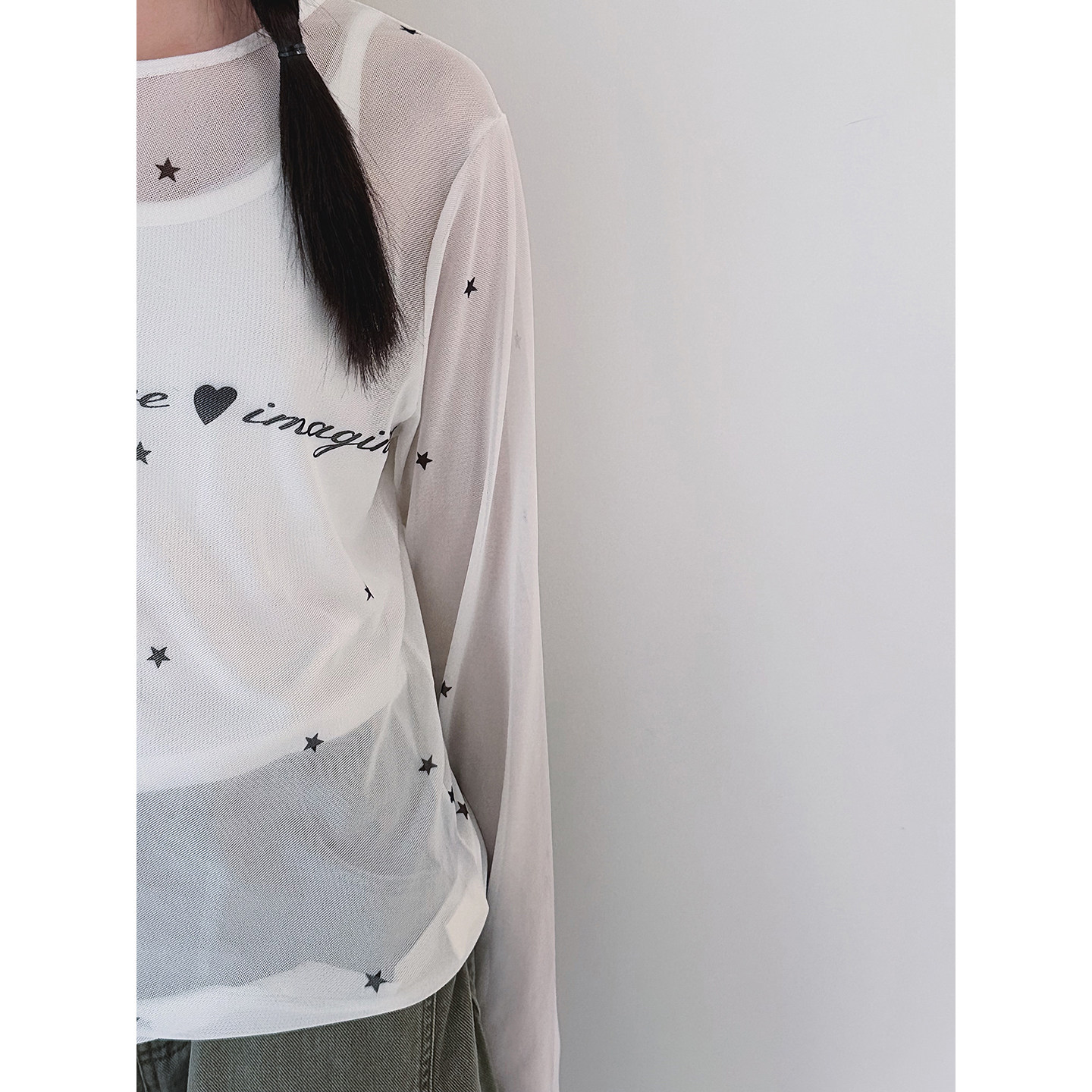 【梦幻网纱】初中生女T恤2026春夏新款青少年薄款长袖网纱打底衫