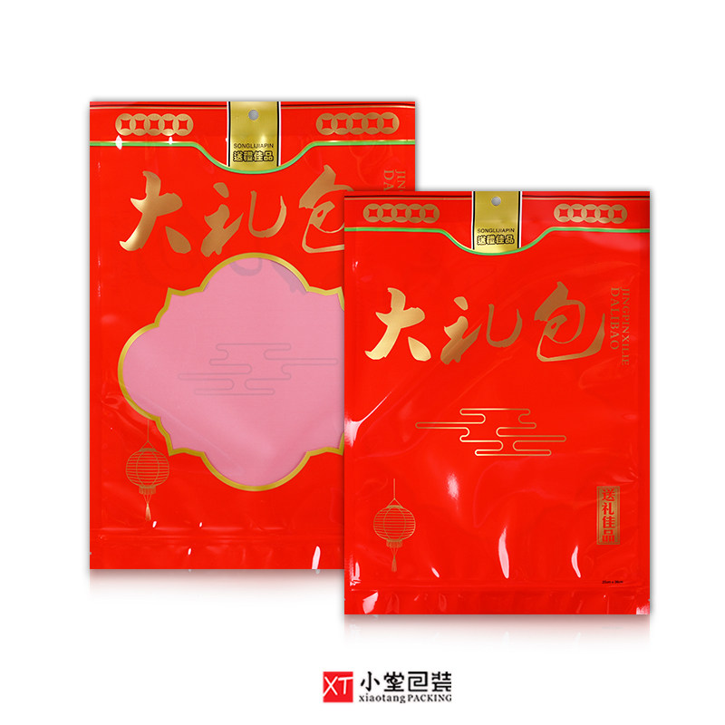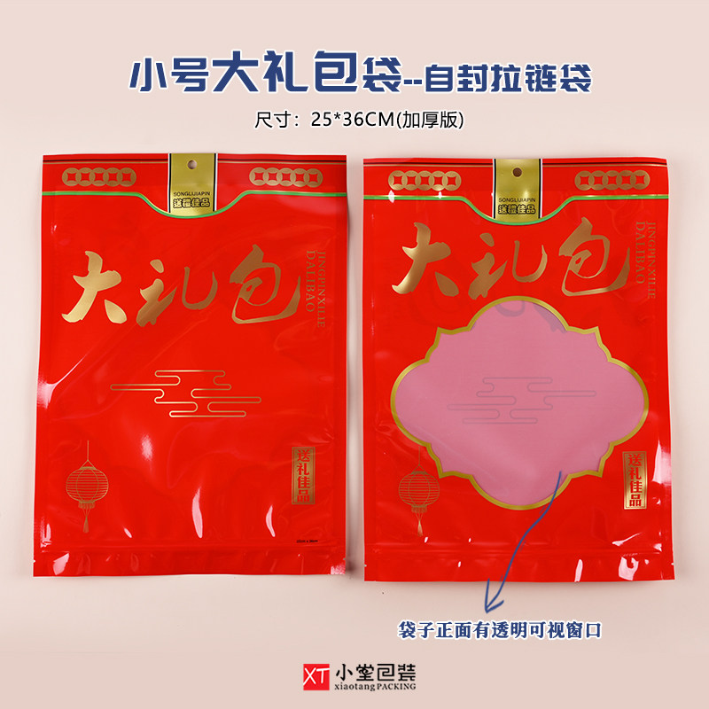新版加厚款自封口大礼包袋子休闲食品零食干货通用包装袋大号小号