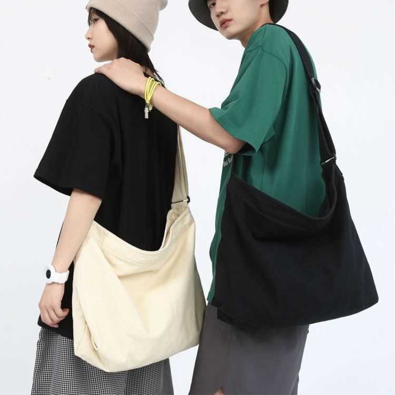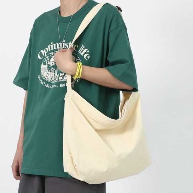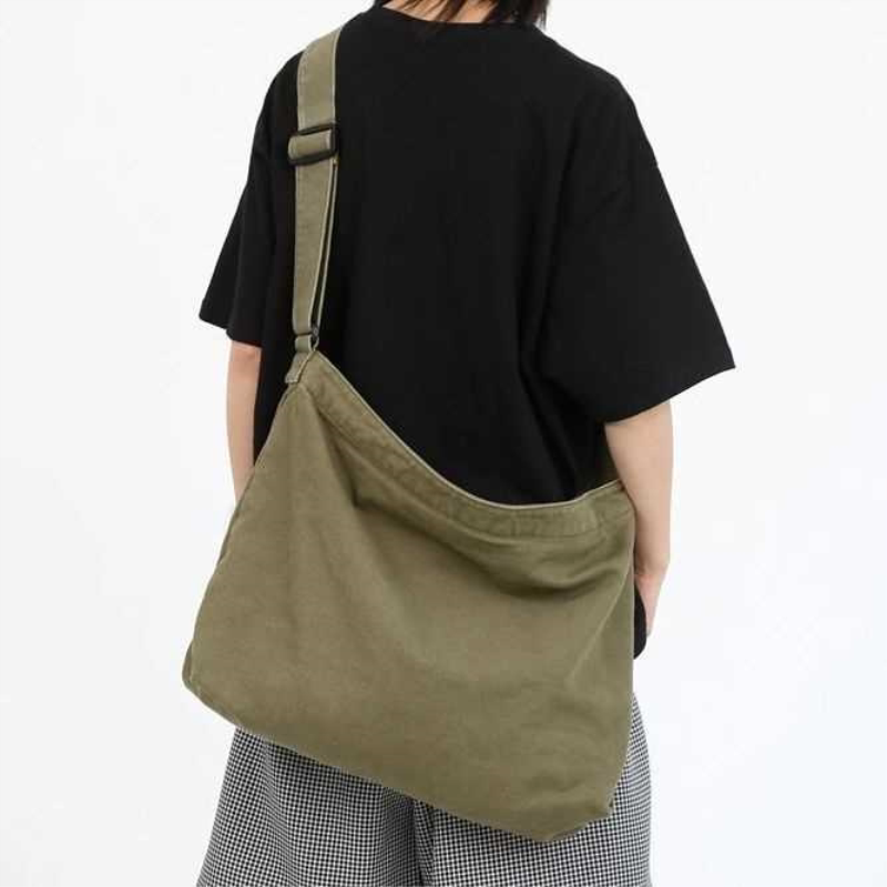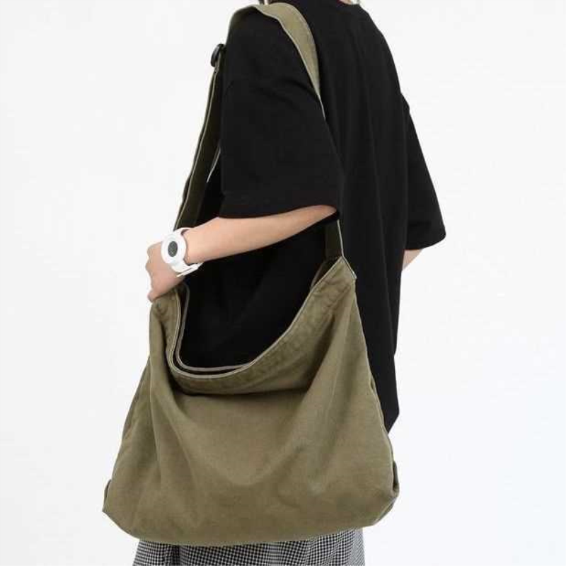日系慵懒风帆布单肩大包女包宽肩带斜跨包 大容量男女学生帆布包