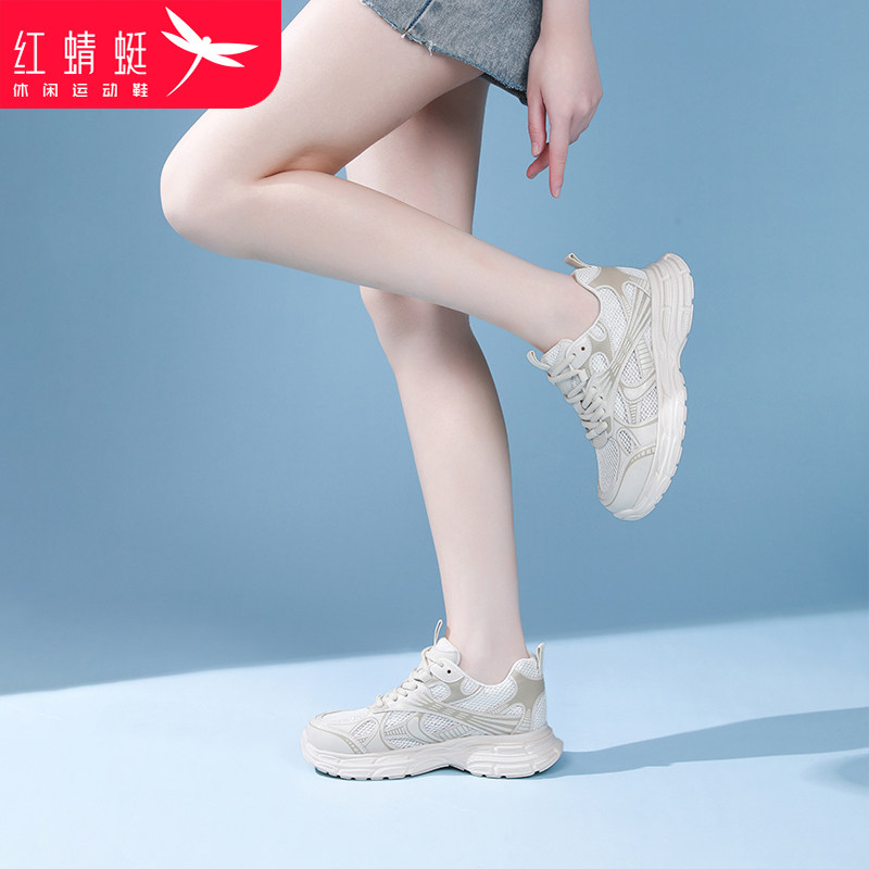 311线报网描述:红蜻蜓夏季网面银色厚底运动老爹鞋透气夏天