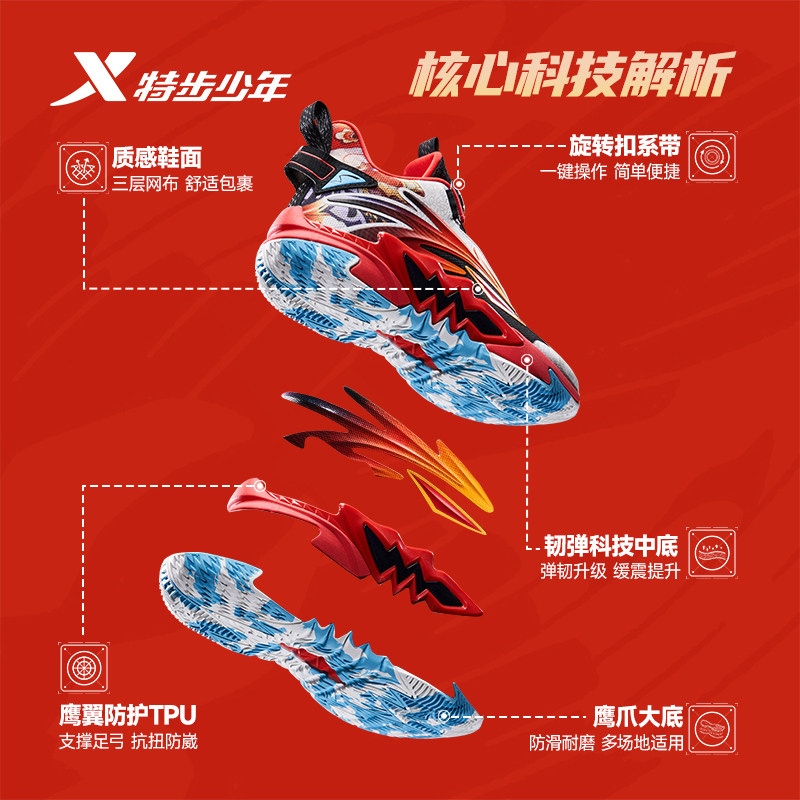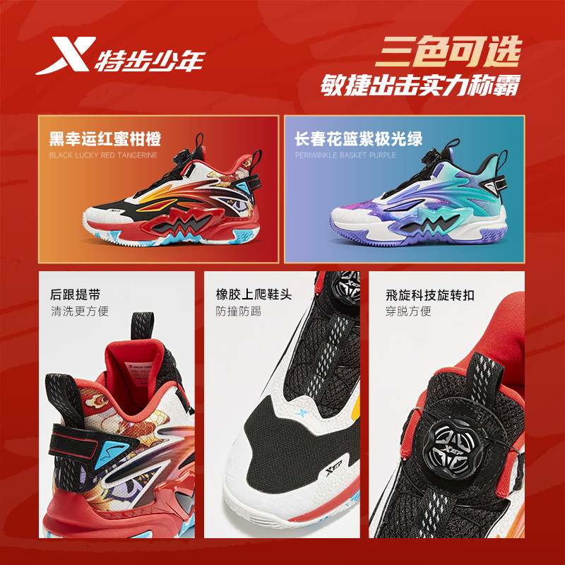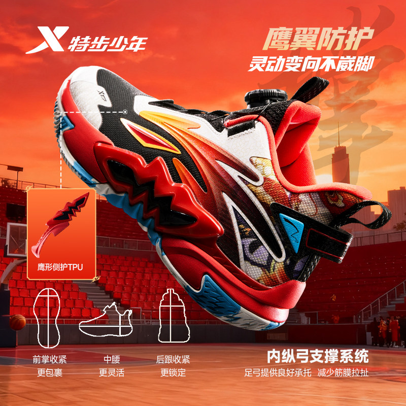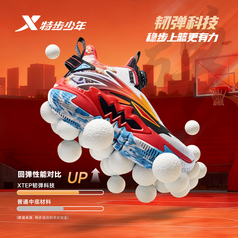 特步童鞋儿童篮球鞋男童秋冬季新款缓震耐磨高帮中大童学生篮球鞋