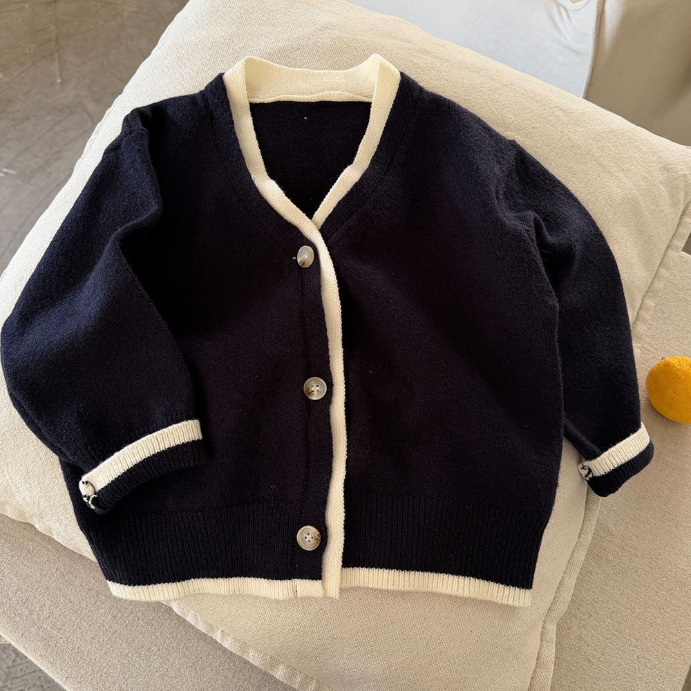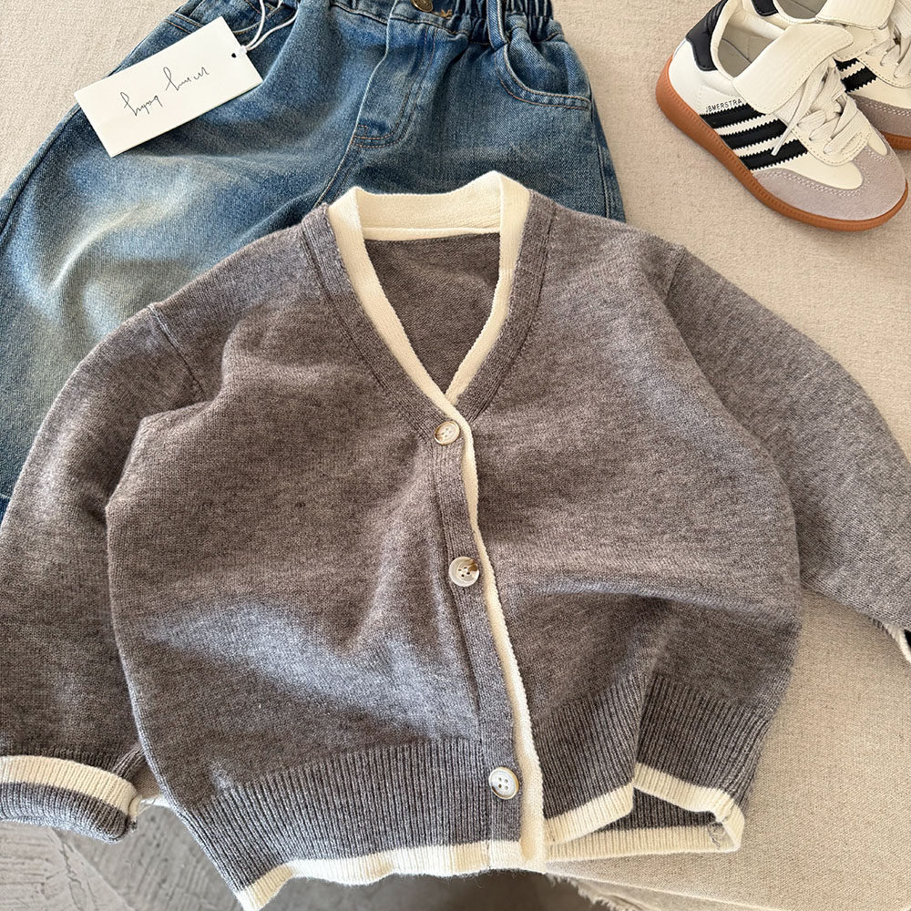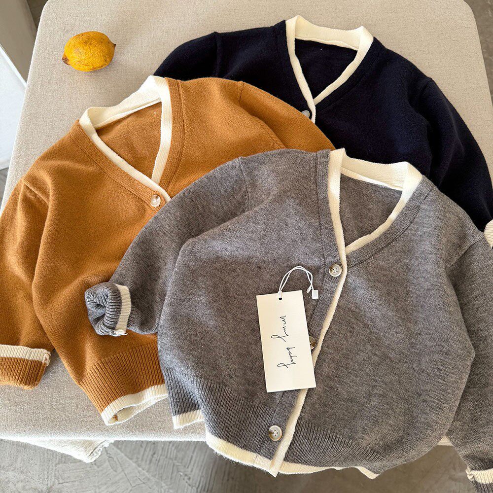 儿童针织衫男春季2026新款小童纯色开衫百搭潮宝宝毛衣外套女洋气