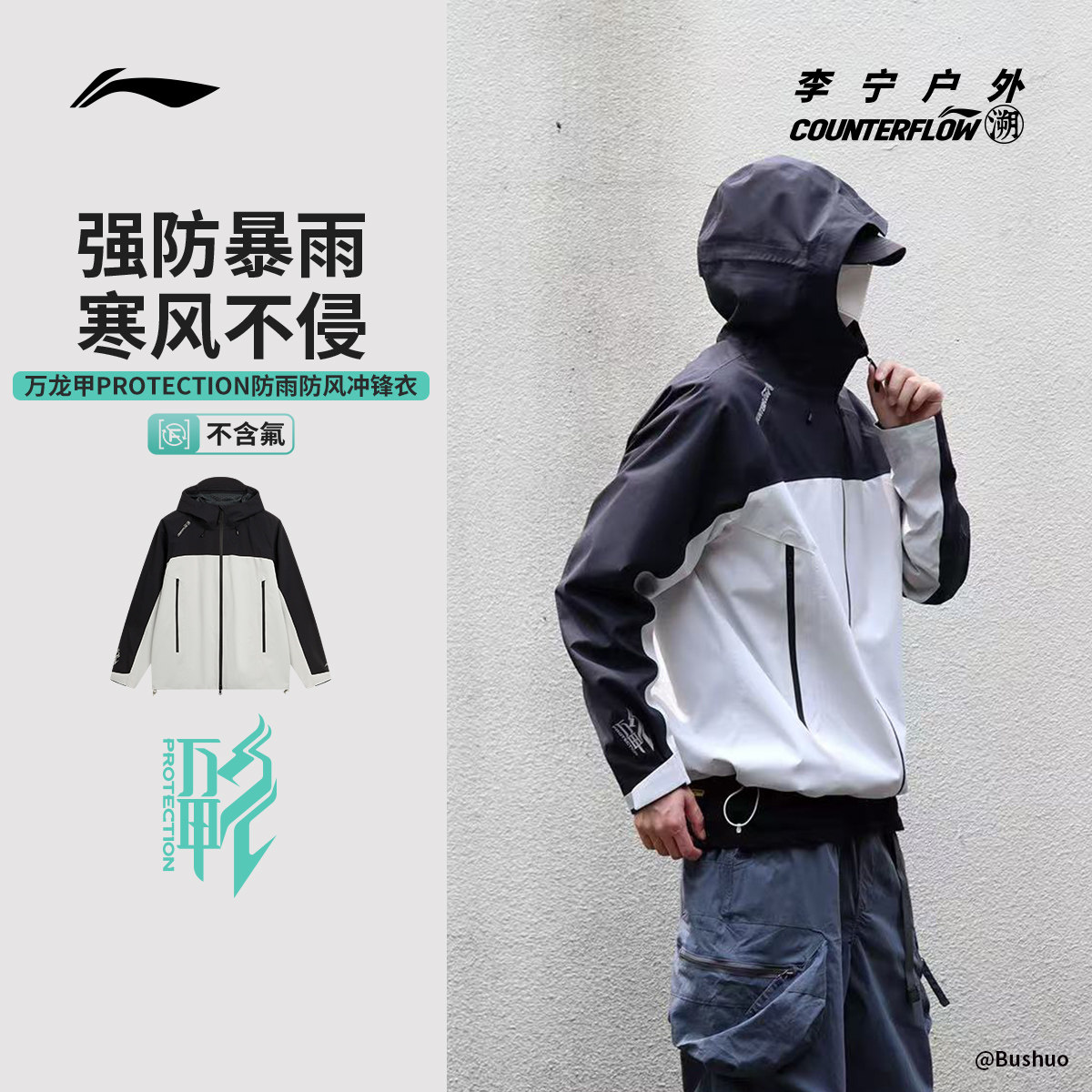 李宁户外CF溯丨万龙甲冲锋衣女防风防水硬壳登山徒步夹克外套男