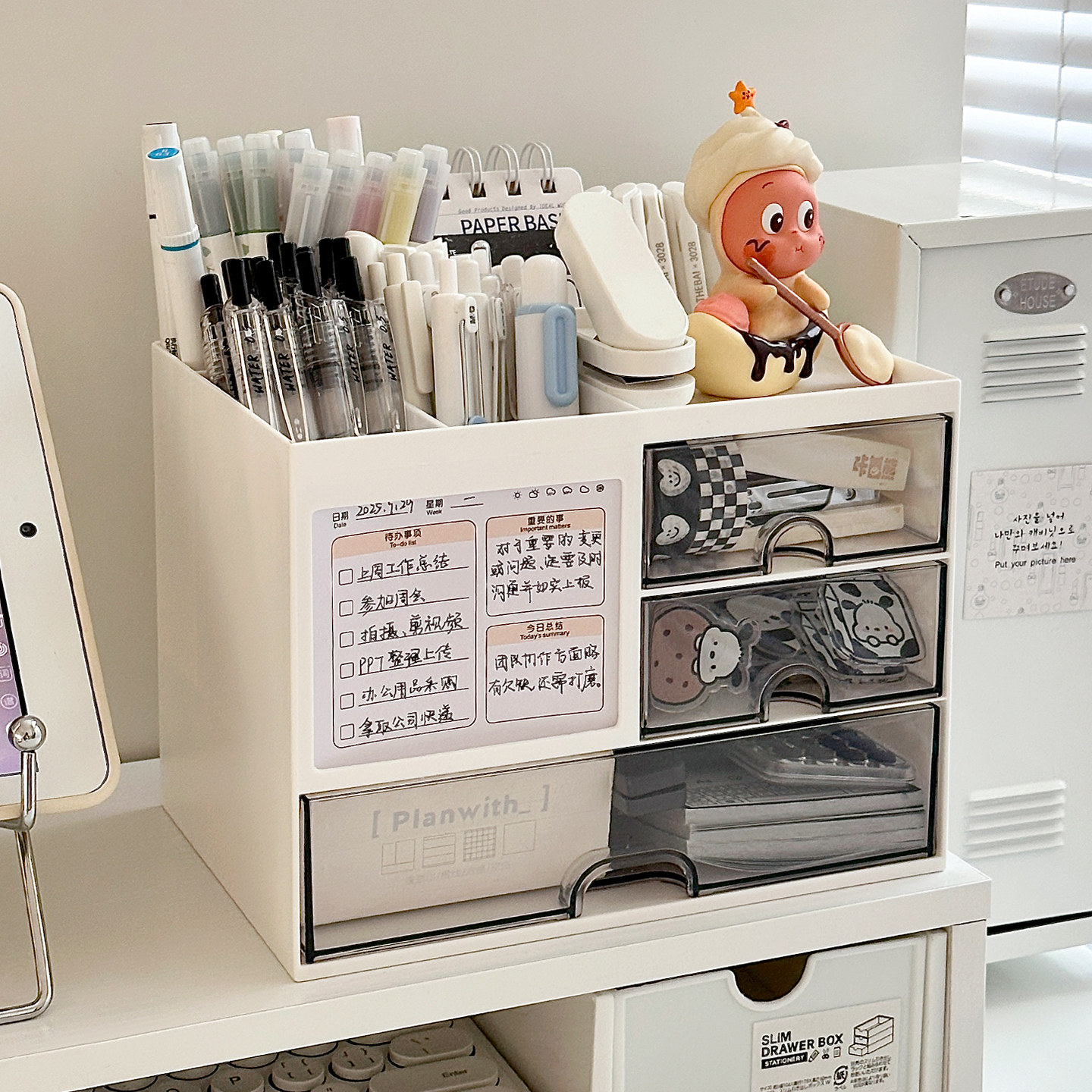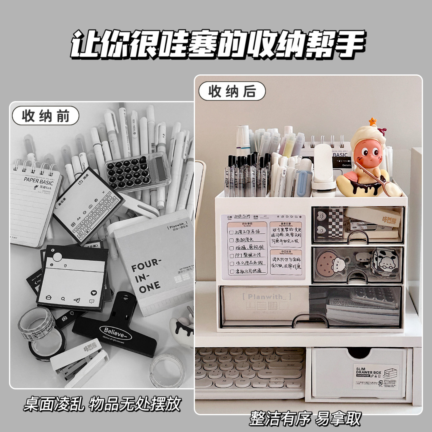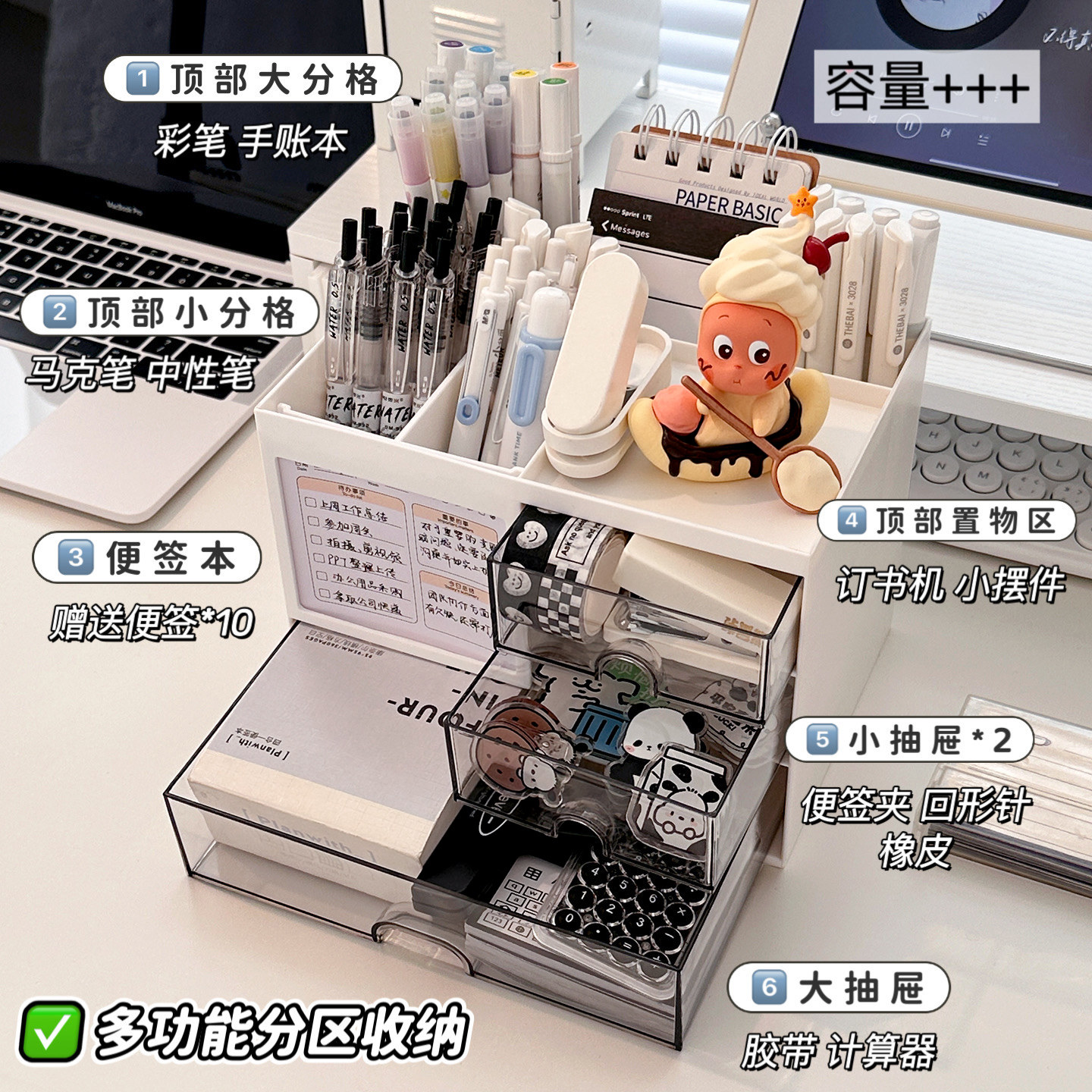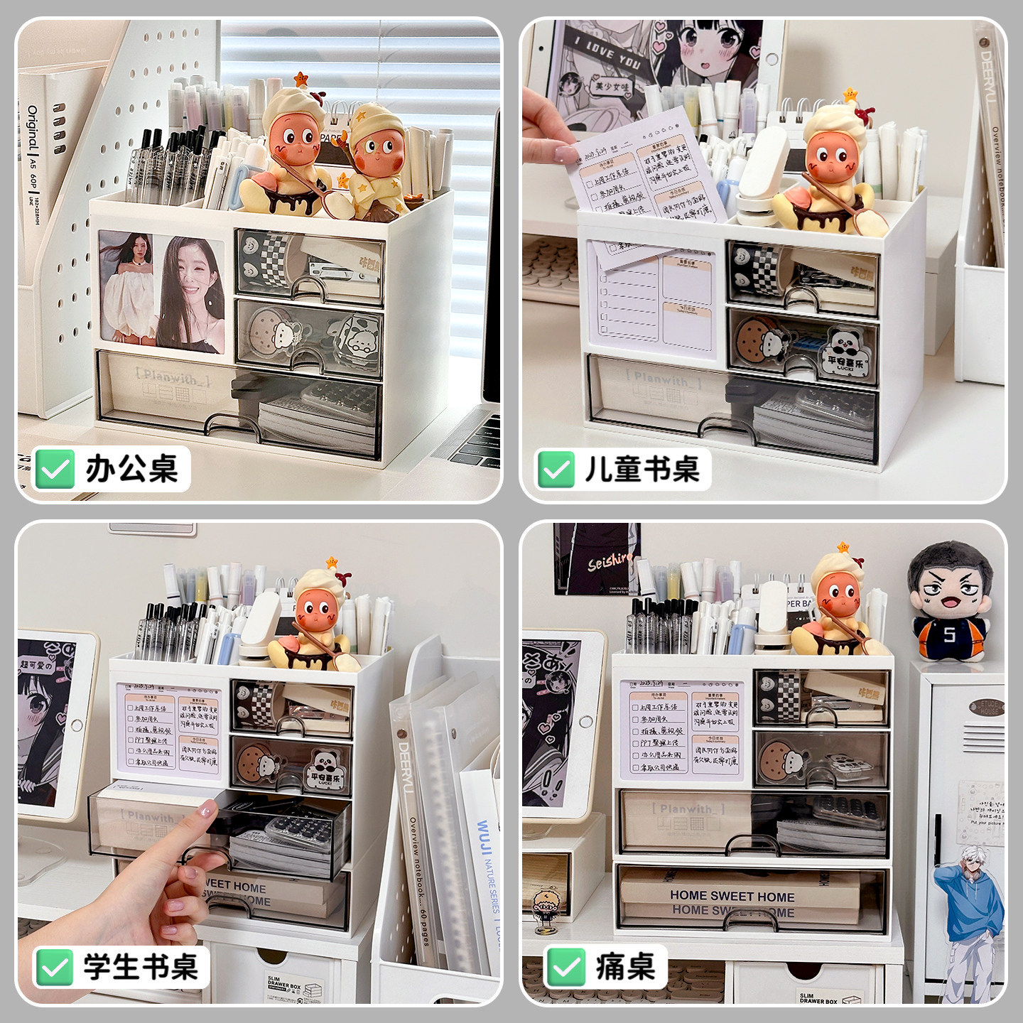 笔筒收纳盒学生桌面办公室大容量多功能整理盒抽屉式文具置物架