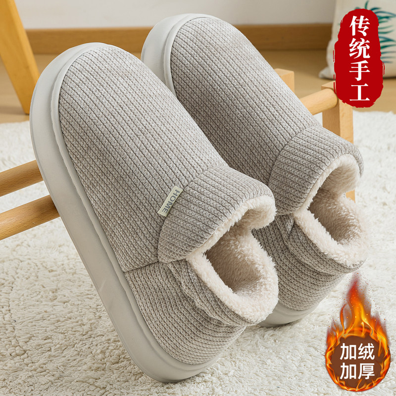 红豆棉拖鞋男款秋冬季2025新款室内家居厚底防滑保暖包跟棉鞋女款