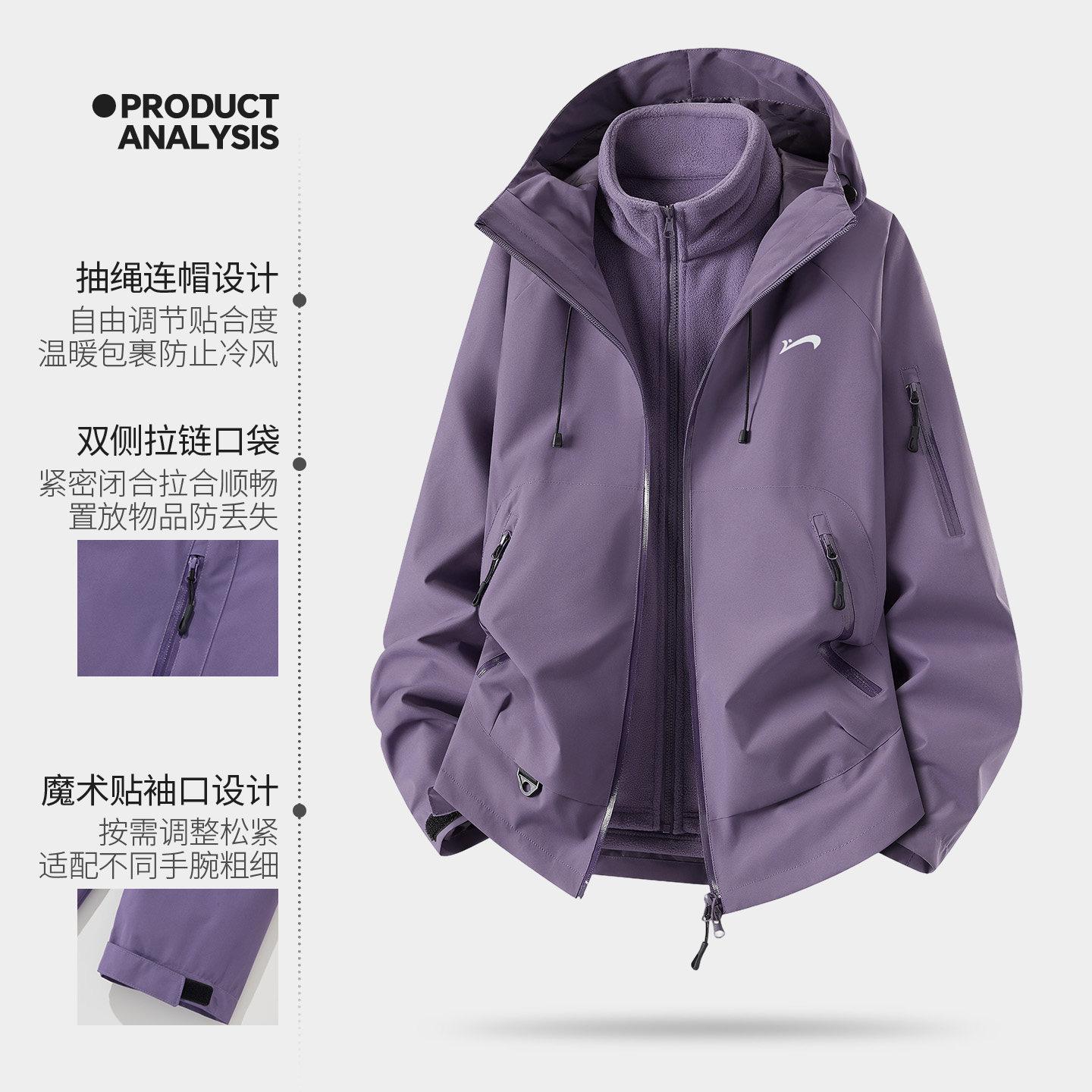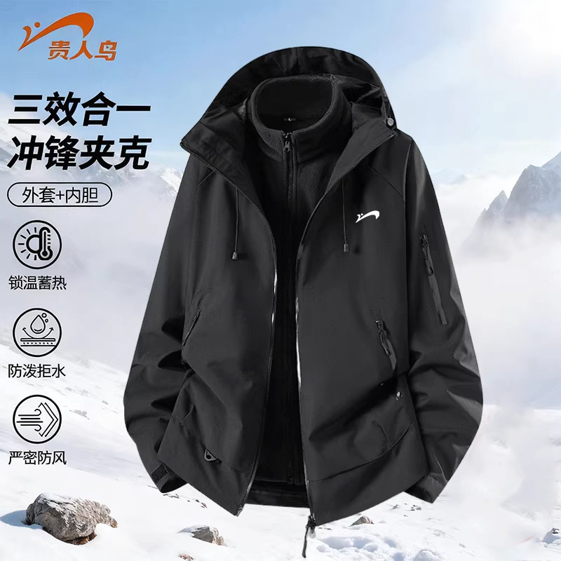 贵人鸟三合一冲锋上衣男女款春秋季2026年新款户外工装夹克外套男