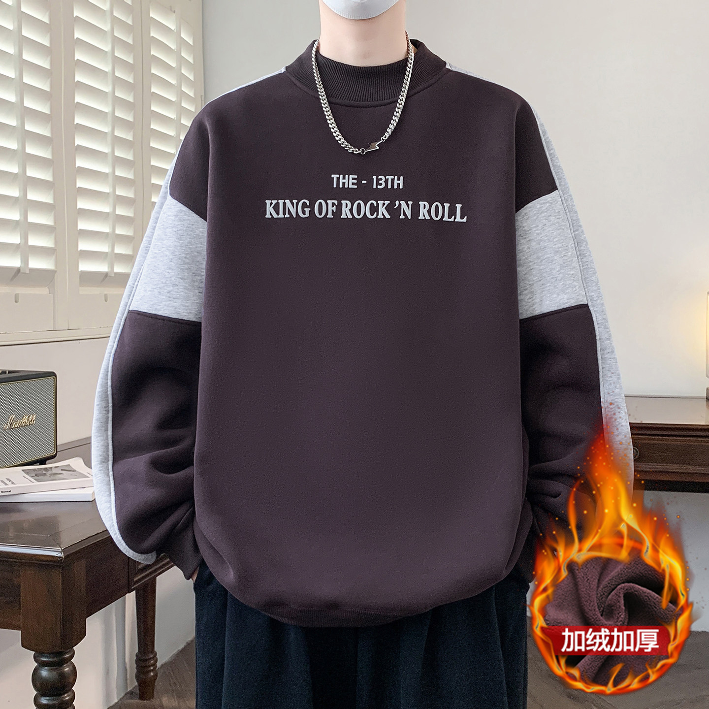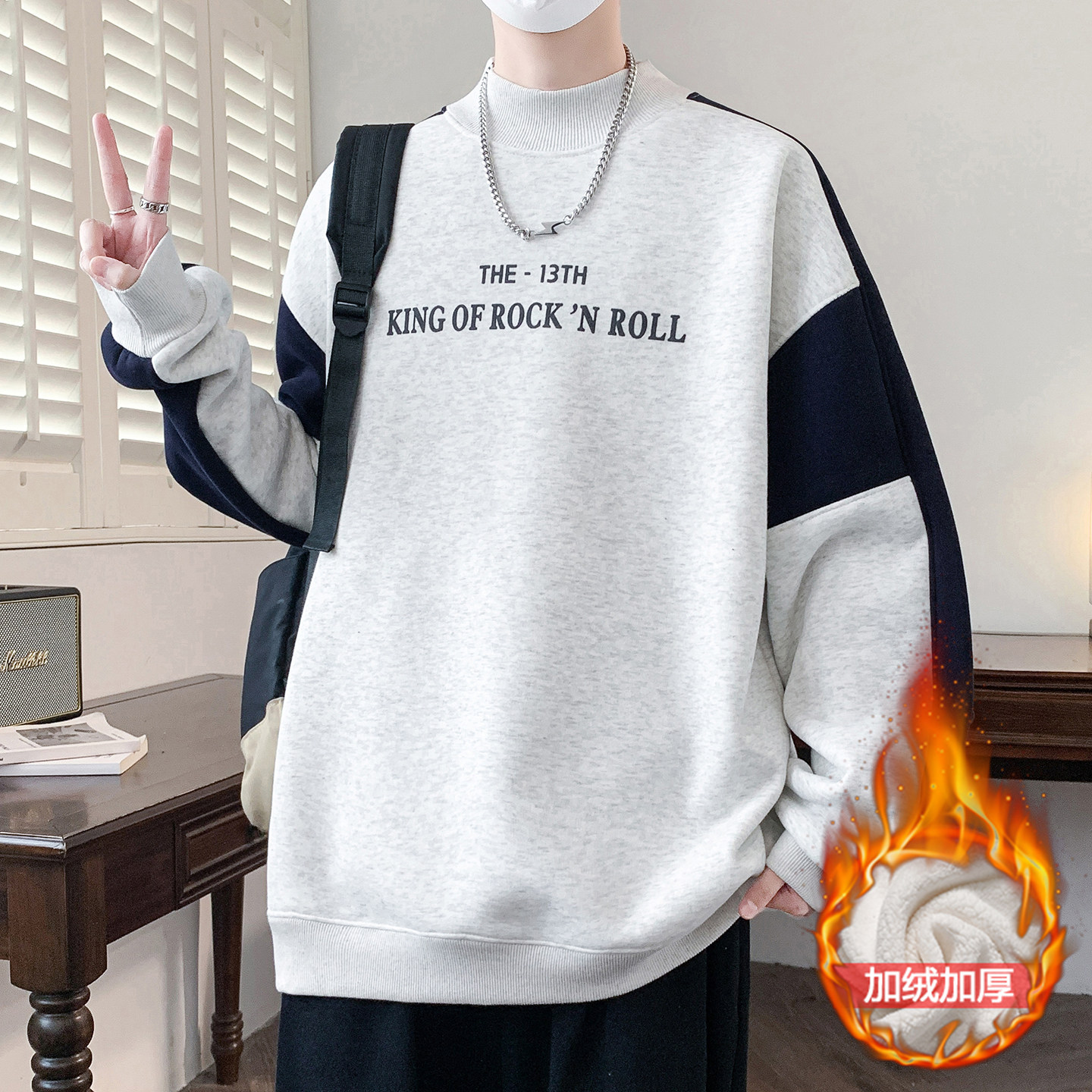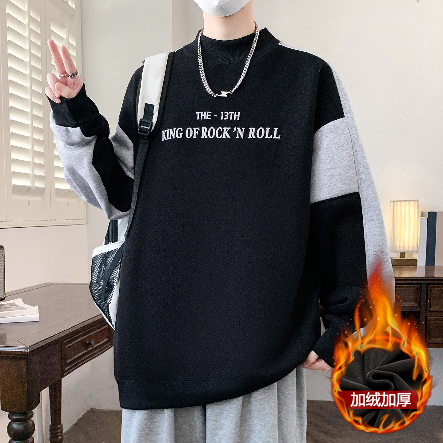 半高领加绒加厚卫衣男款青少年初中高中学生帅气保暖打底上衣内搭