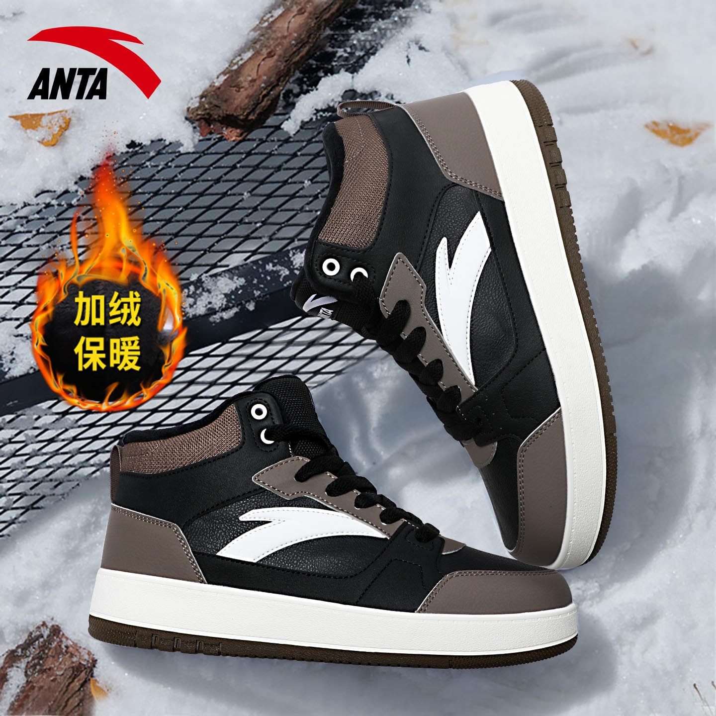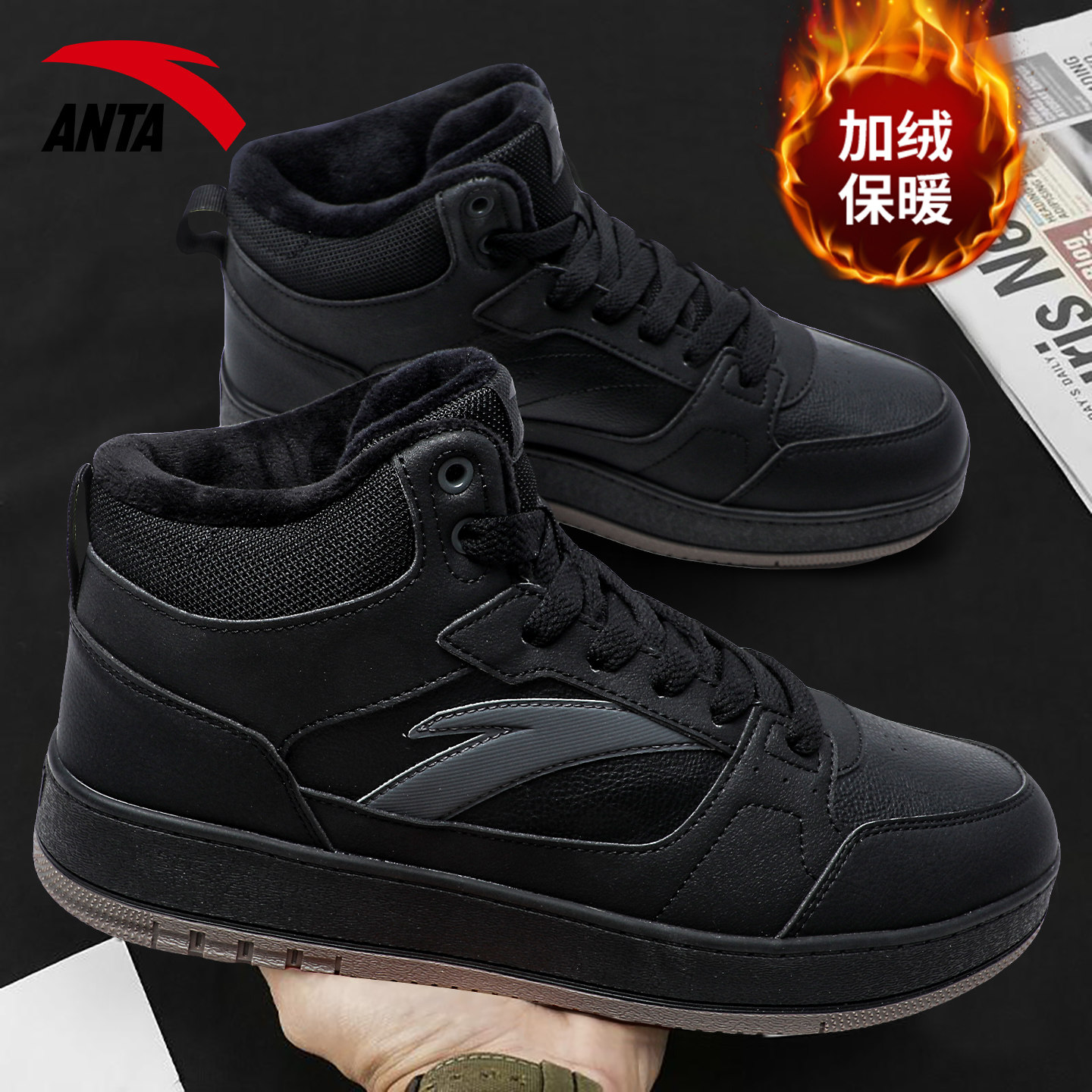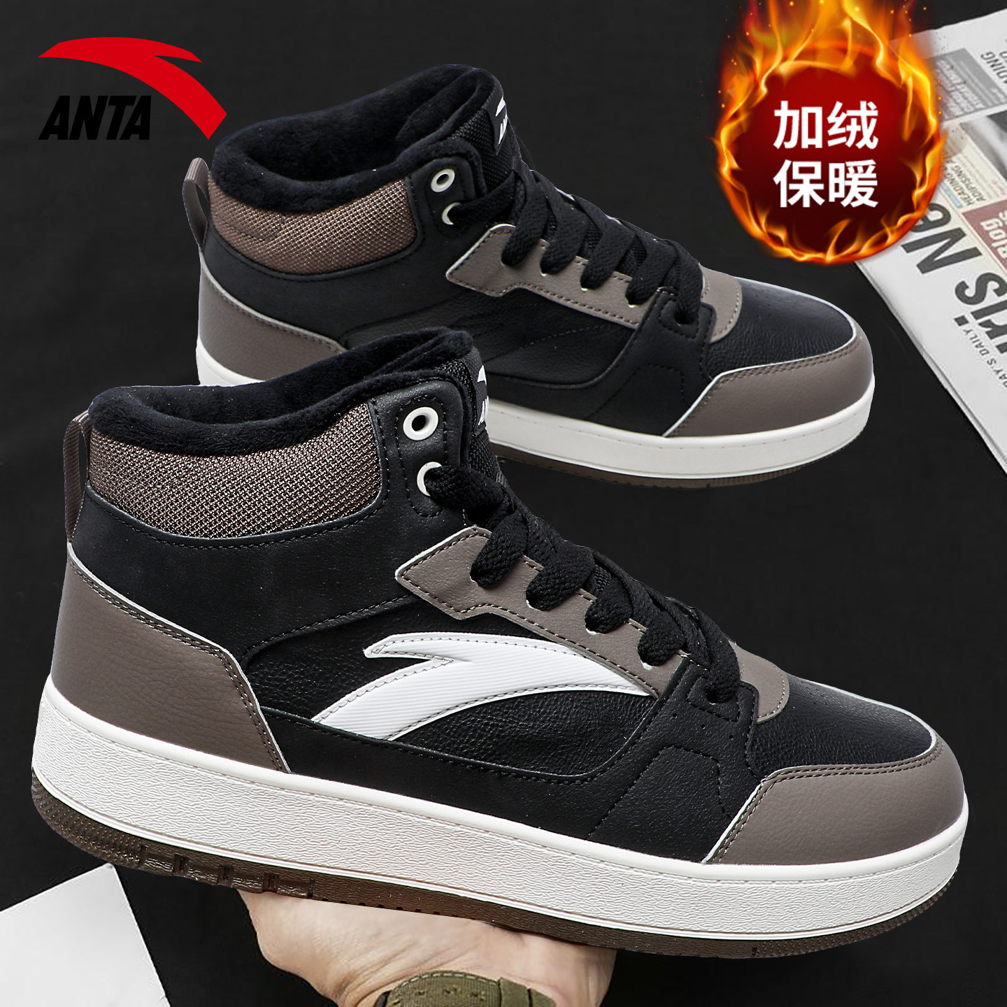 安踏高帮棉鞋男鞋冬季加绒2026新款防滑板鞋男款百搭运动休闲鞋子