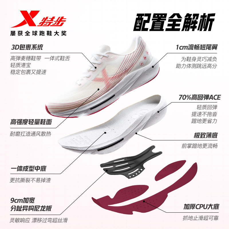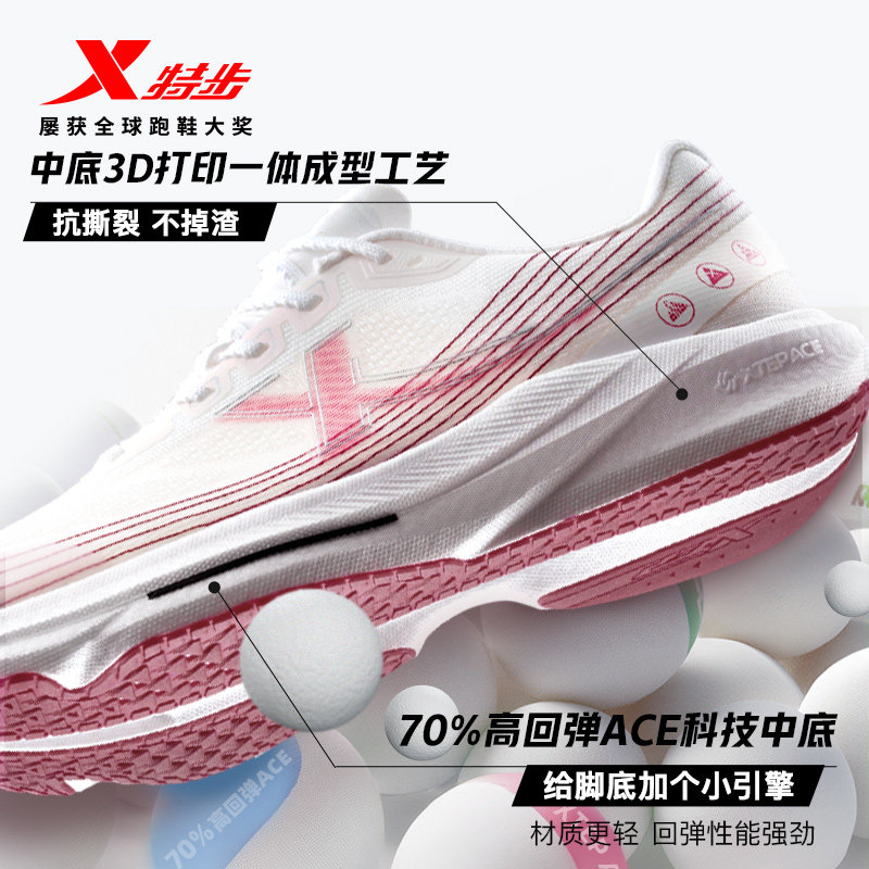 特步一体成型三代体考版丨跑鞋女耐磨减震透气中考体测跑步鞋女款