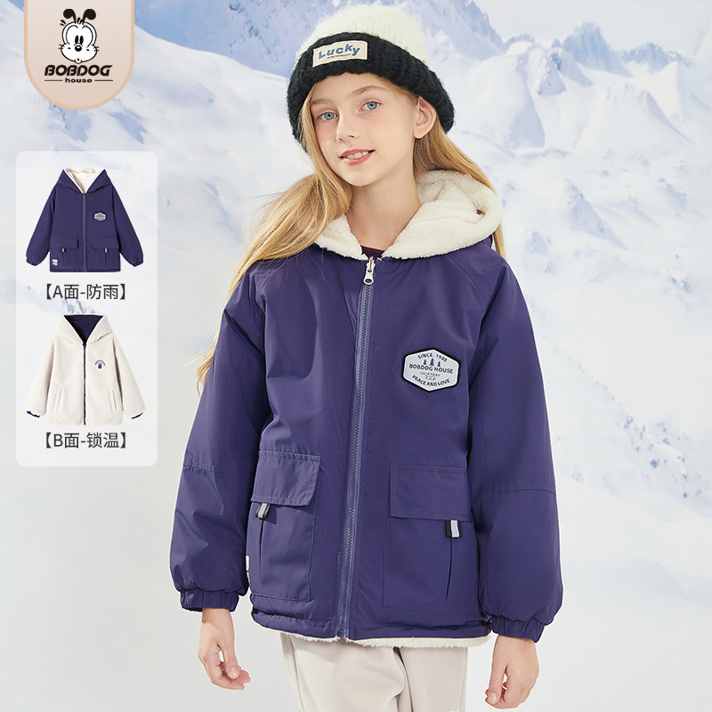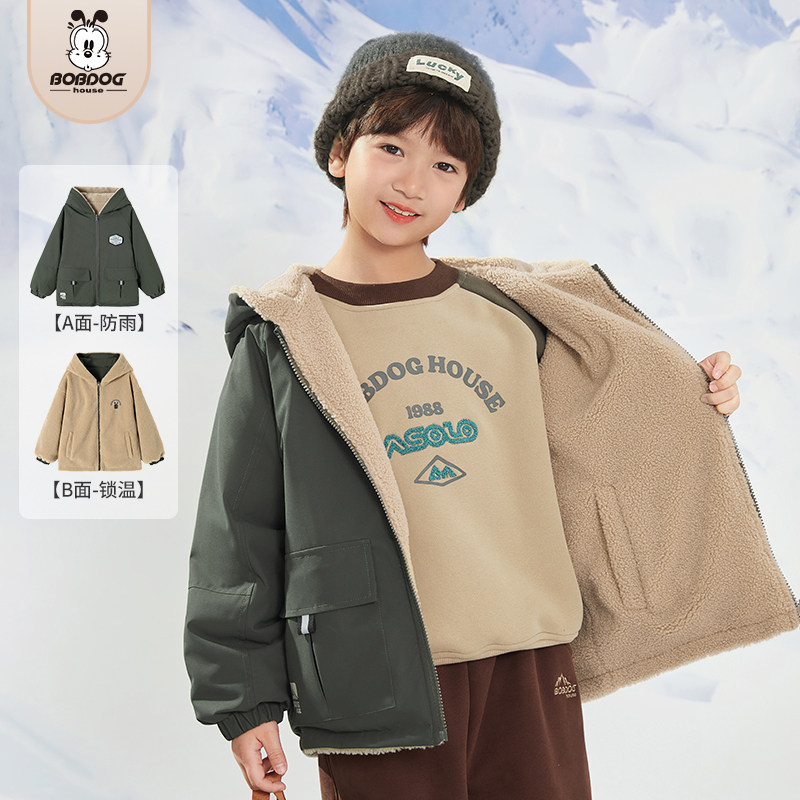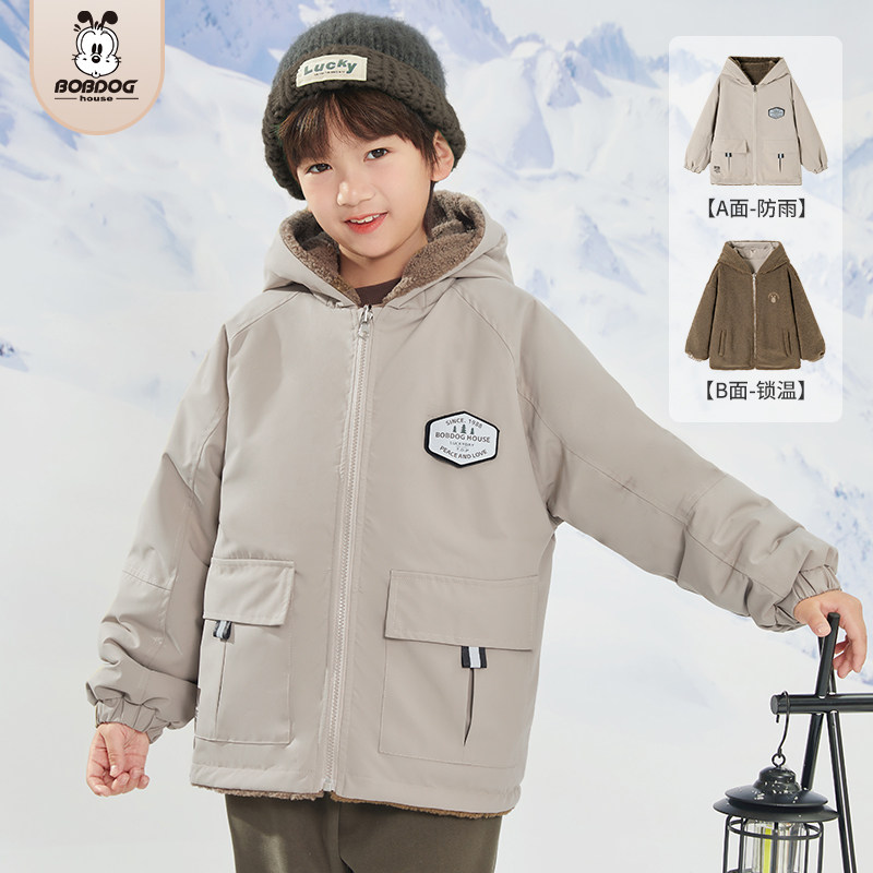 巴布豆2025冬中大童男女童儿童加绒加厚两面穿外套