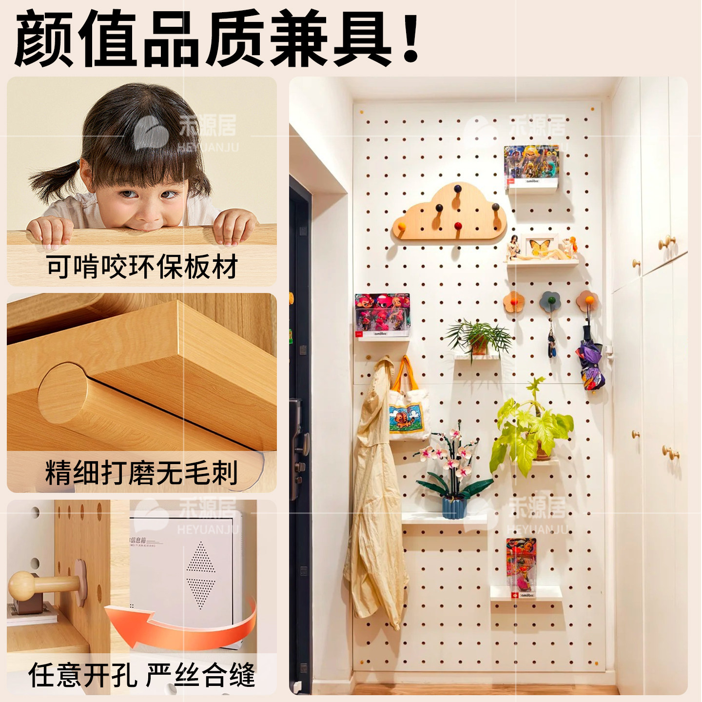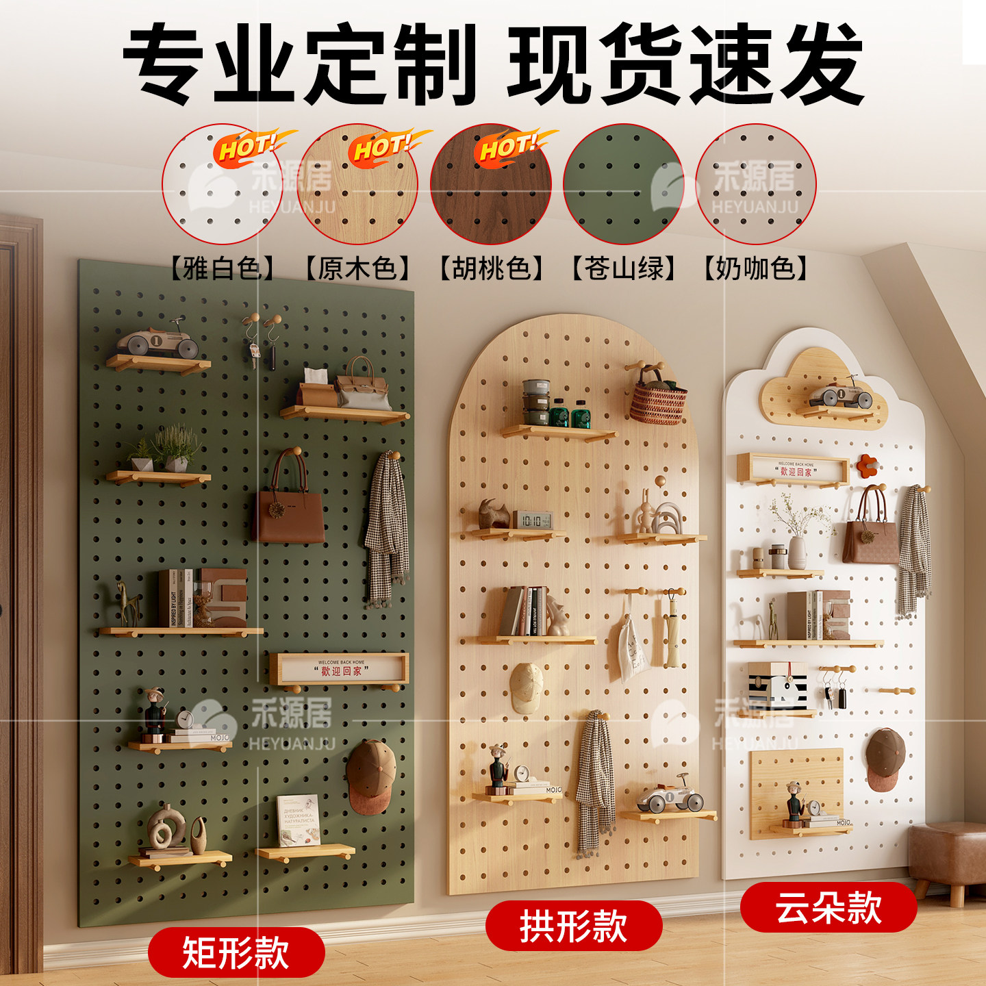 洞洞板置物架入户玄关墙面墙上实木置物架免安装造型墙定制收纳架