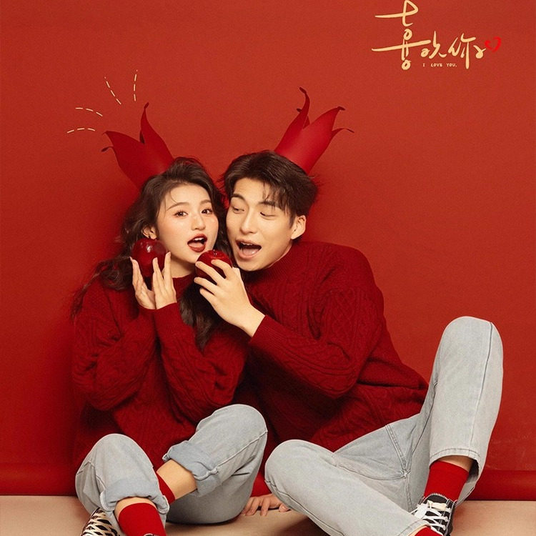 高端情侣装酒红色毛衣男士冬季2026年新款马年本命年针织衫男女款