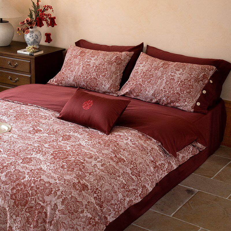 2025新款婚嫁红n色结婚四件套喜被轻奢高级感主卧室婚庆喜庆床品