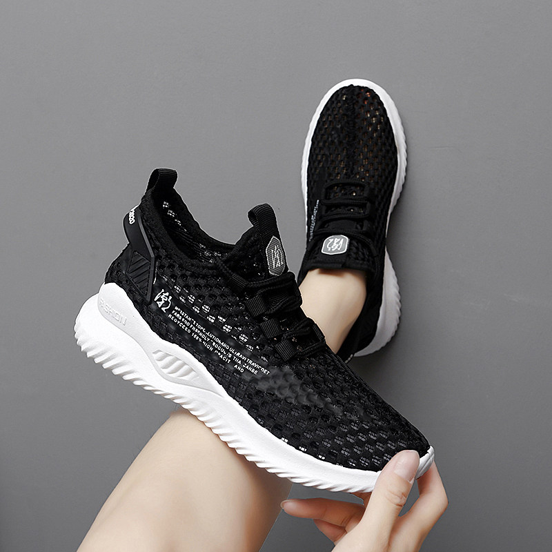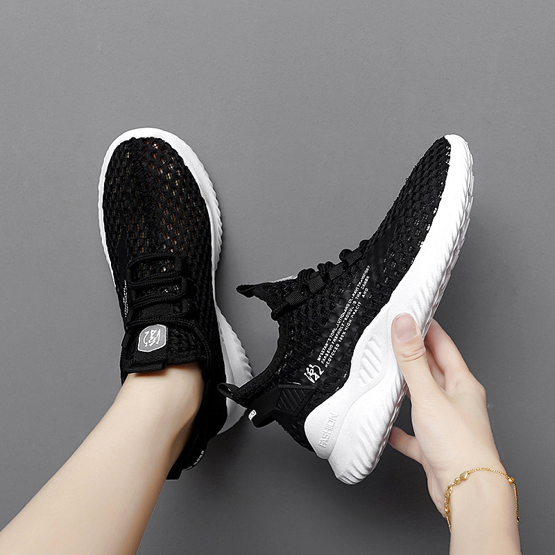 网眼透气女鞋夏季运动鞋大码41一43镂空网鞋黑色工作鞋网面旅游鞋
