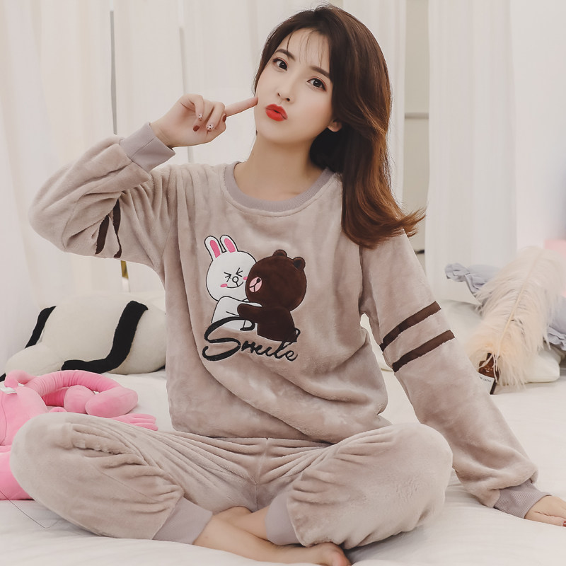 珊瑚绒睡衣女秋冬加绒加厚套装法兰绒长袖时尚洋气家居服女可外穿
