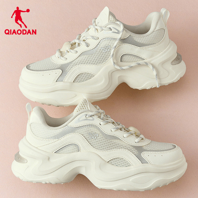 乔丹女休闲鞋2026夏新款透气网面厚底增高运动鞋白色老爹鞋不累脚