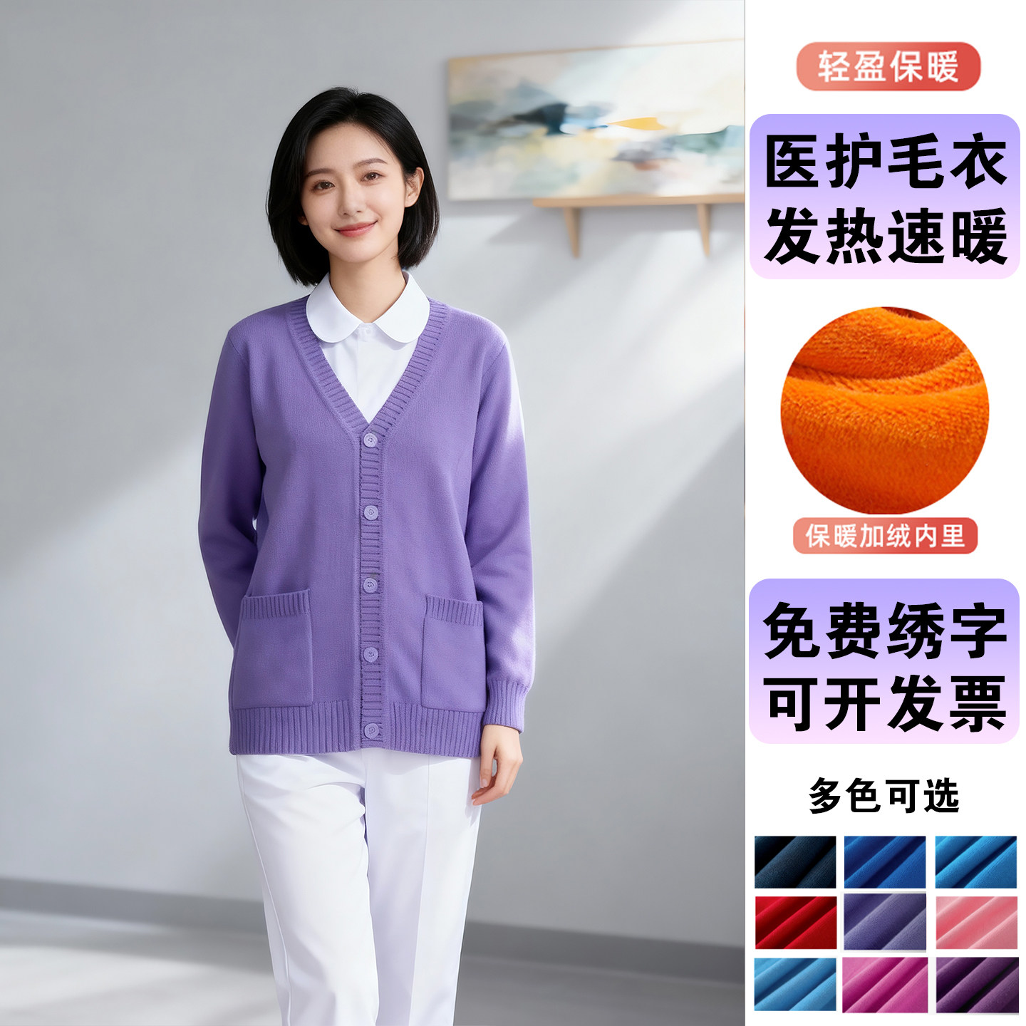 护士毛衣开衫外套不起球加绒加厚保暖秋冬保暖工作服医院女针织衫