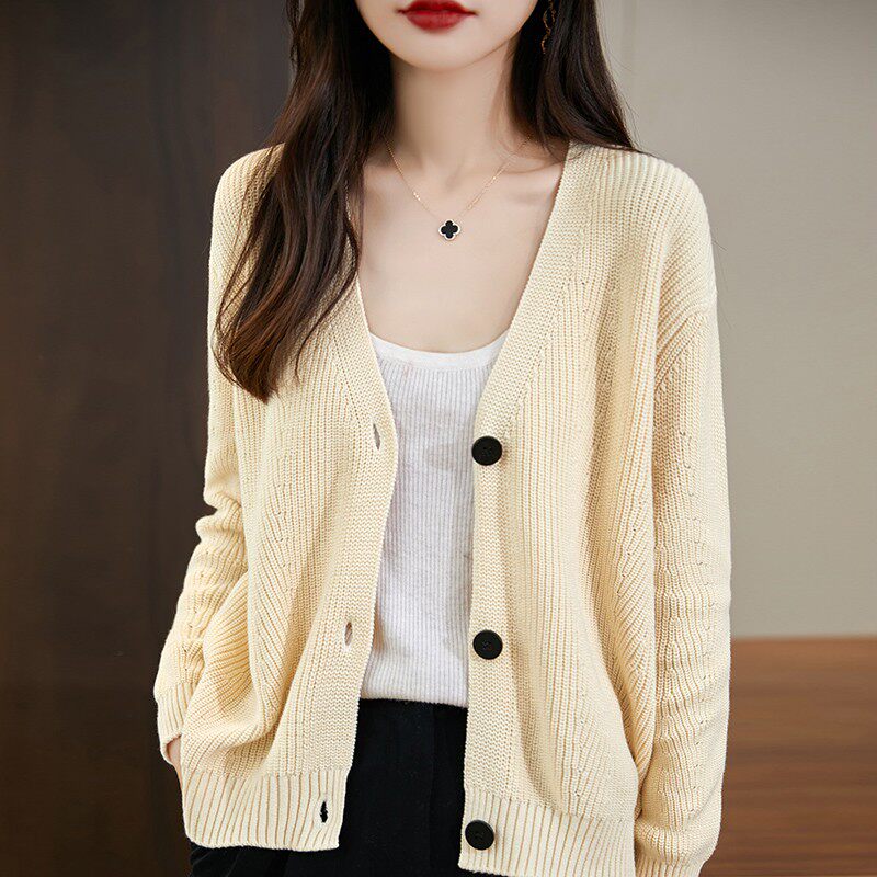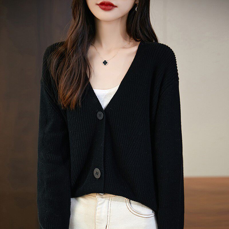 不起球100%纯棉针织开衫女外搭2025新款秋冬加厚宽松韩版外套毛衣