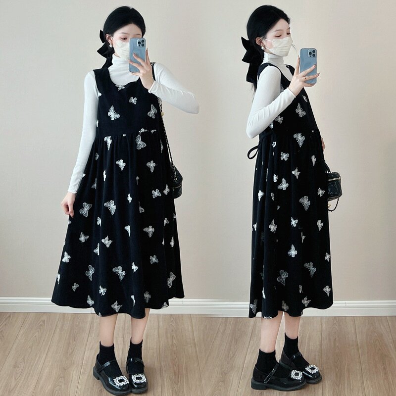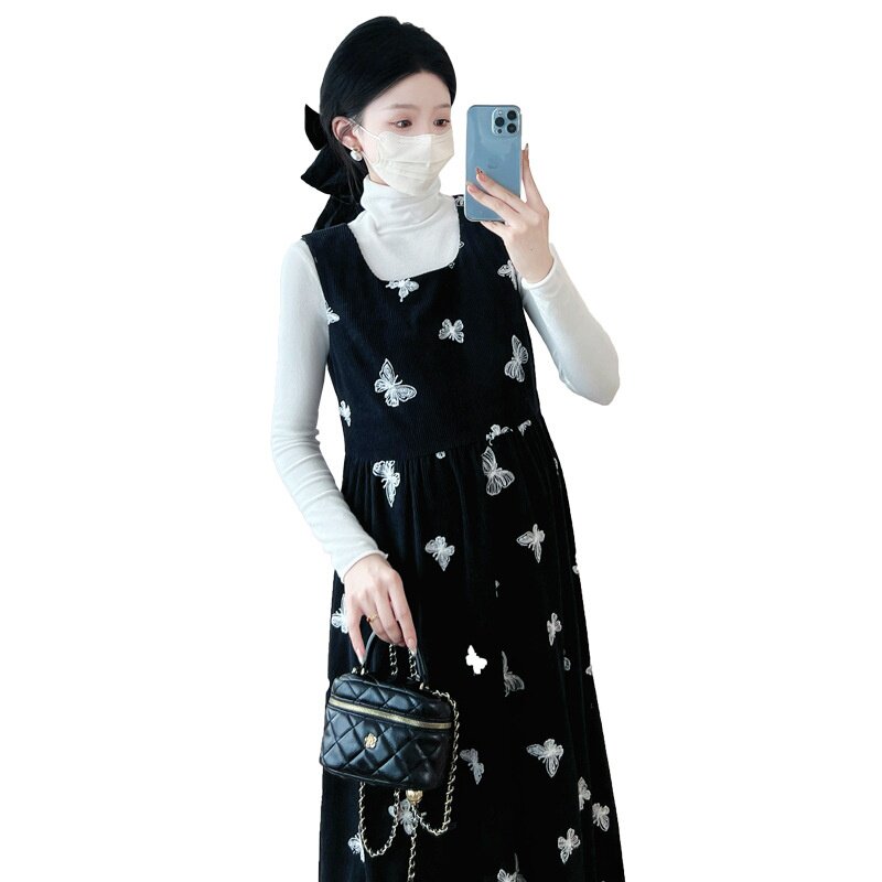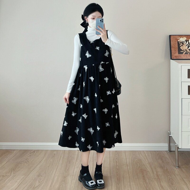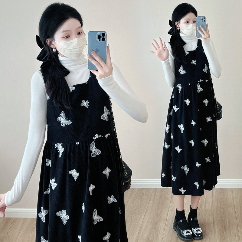 孕妇装2025秋季新款韩版时尚灯芯绒2件套孕妇连衣裙