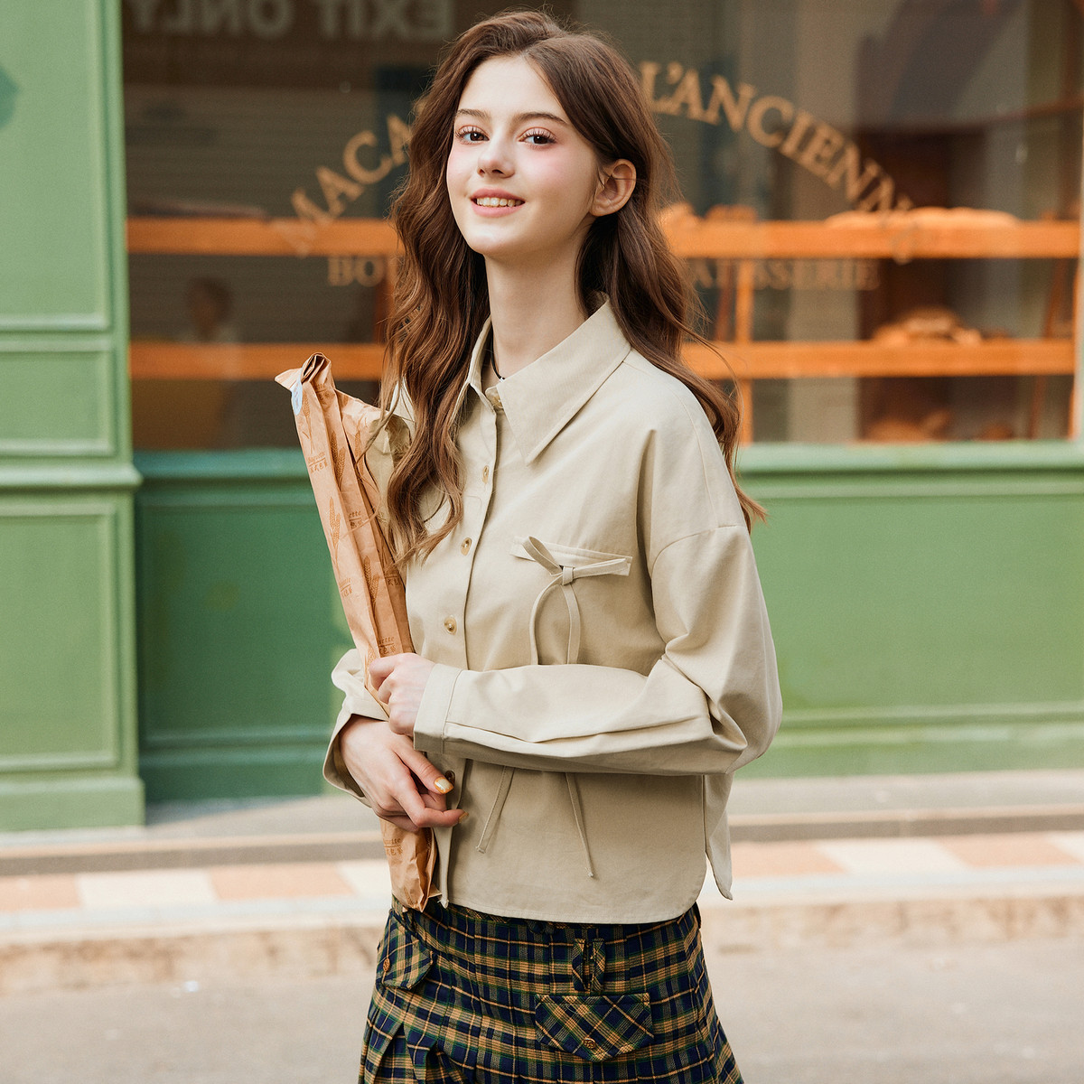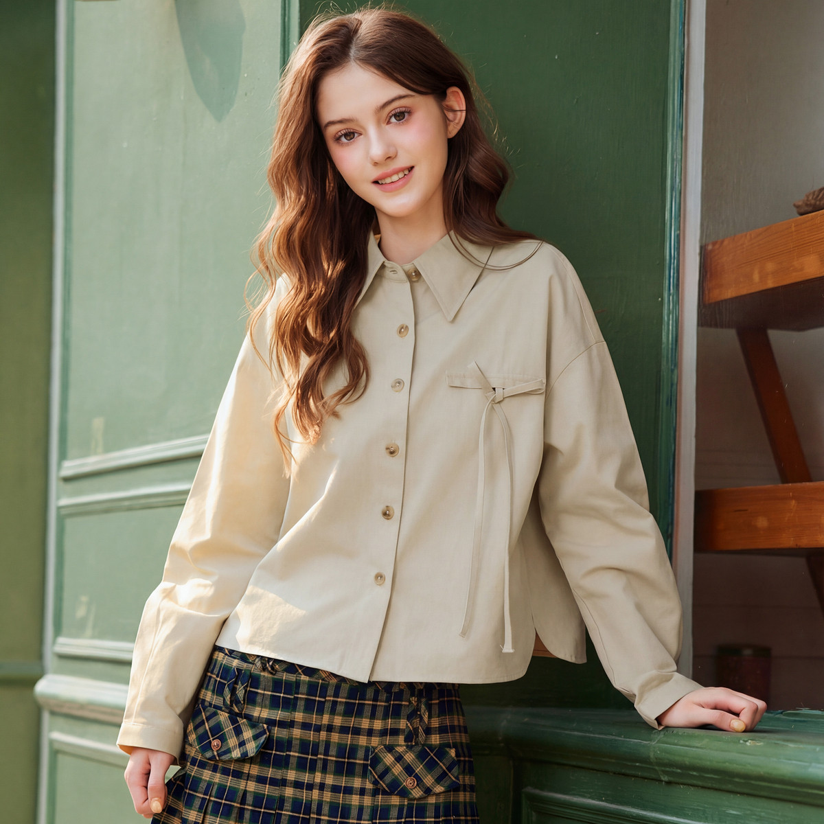 唐狮春装女款2026新款长袖衬衫翻领宽松休闲通勤穿搭纯棉上衣