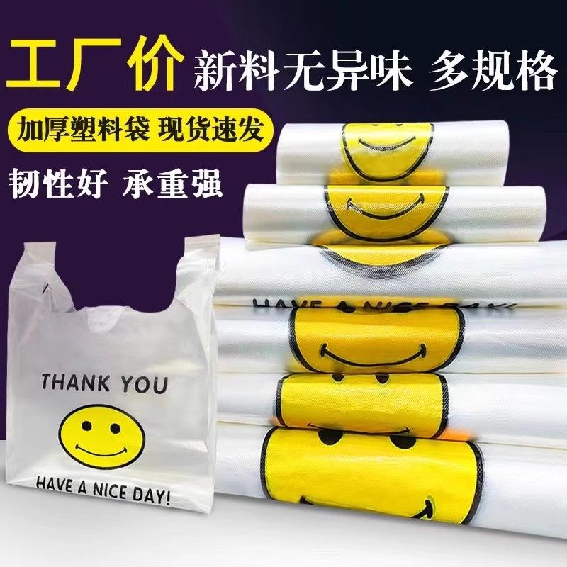 透明加厚笑脸塑料袋食品级外卖打包袋食品袋批发商用手提袋子胶袋