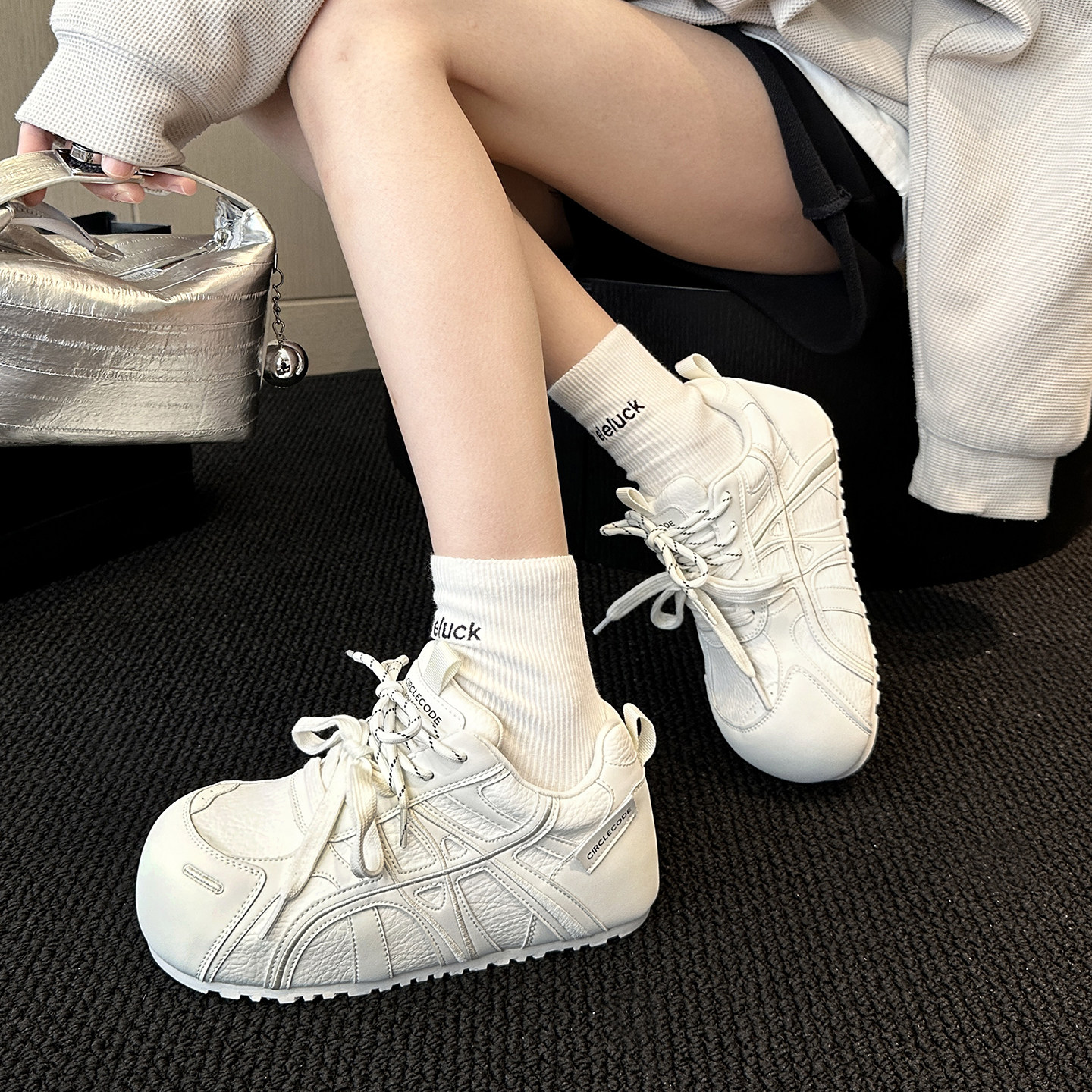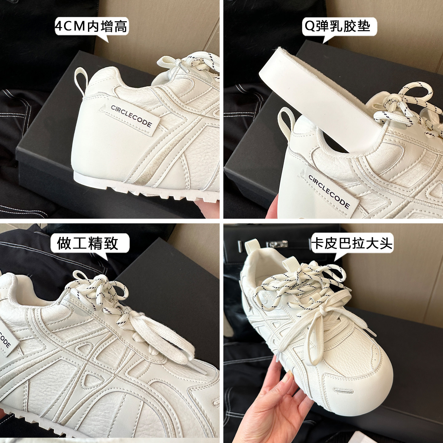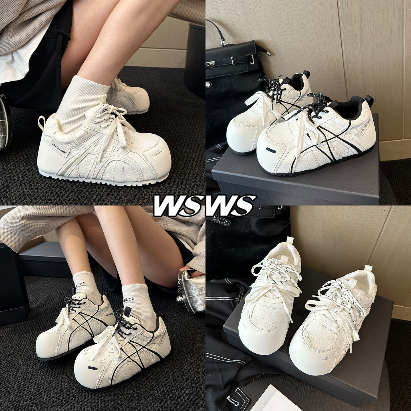 WSWS|国潮春季新品真皮内增高厚底大头丑萌小白鞋德训鞋女鞋板鞋
