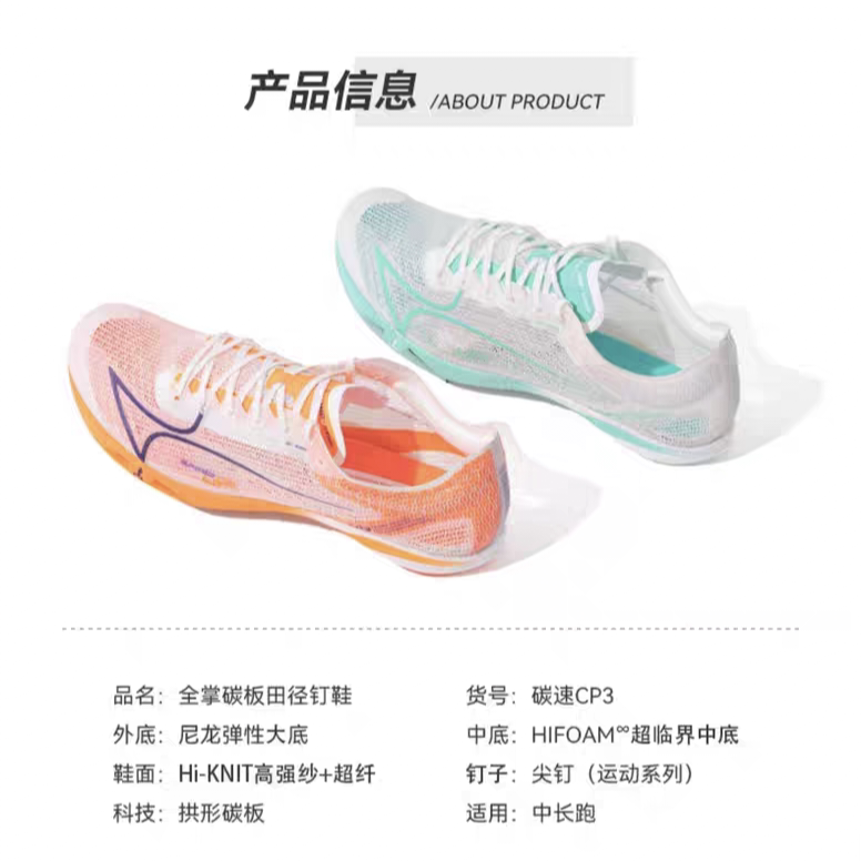 海尔斯碳速CP3钉鞋中长跑鞋男女学生田径比赛体考专业碳板钉子鞋