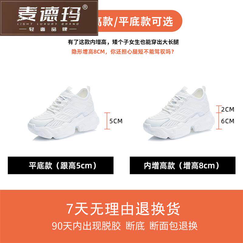 内增高小白鞋女透气新款夏天小个子8cm百搭休闲运动老爹鞋女ins潮