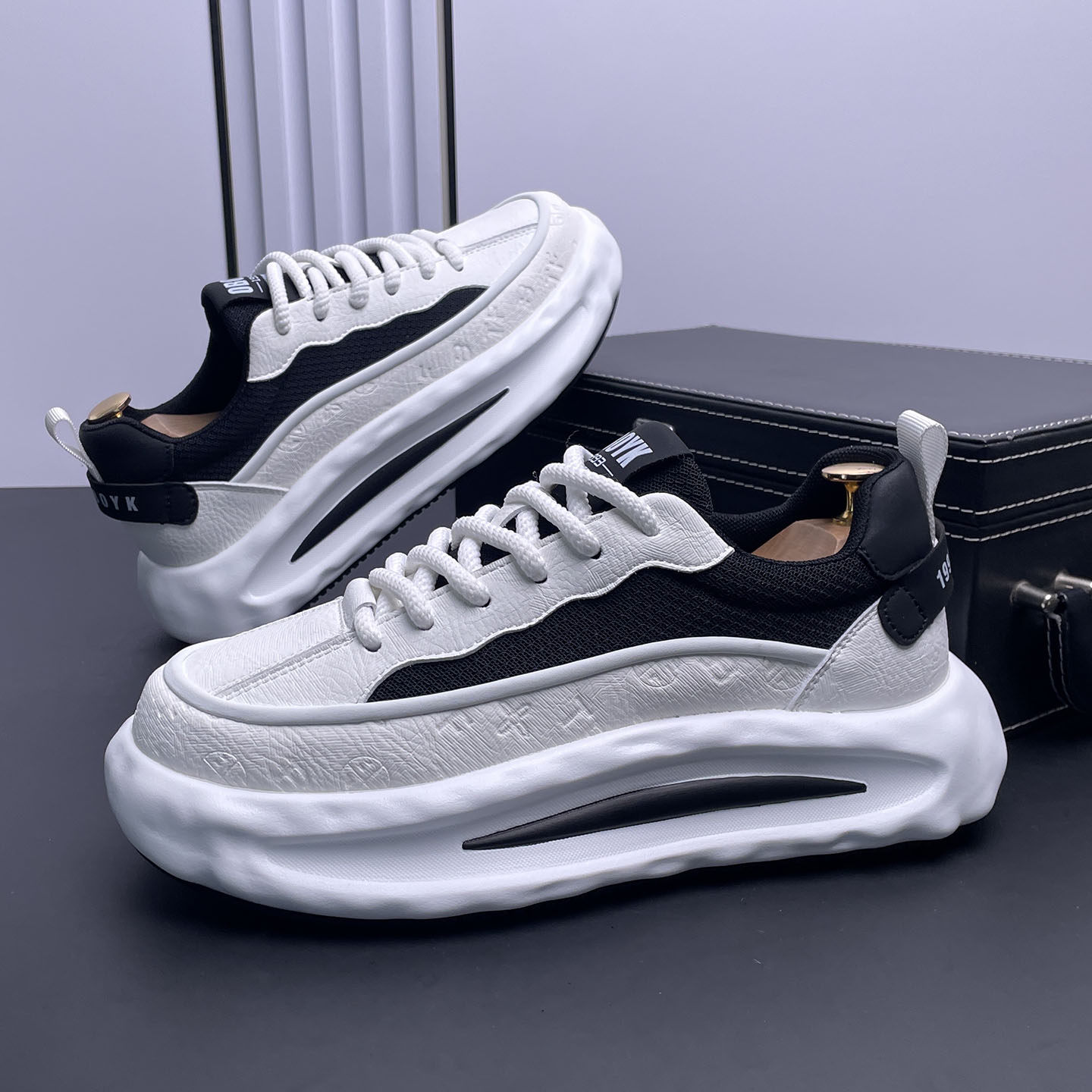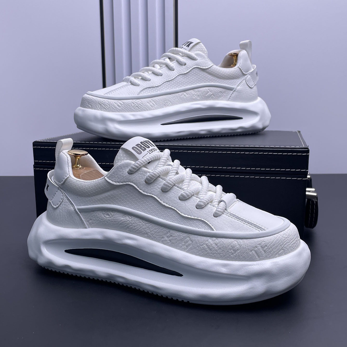 高级感小白鞋男内增高夏季新款透气时尚运动休闲鞋百搭厚底老爹鞋