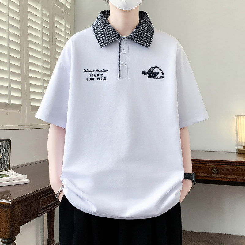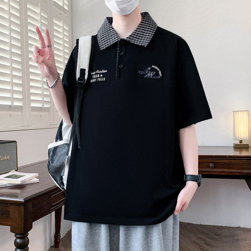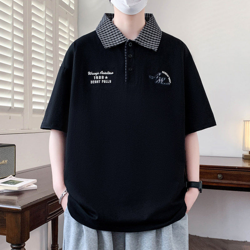 胖男童格子领Polo衫大童男装夏季初中学生胖男孩宽松休闲短袖T恤