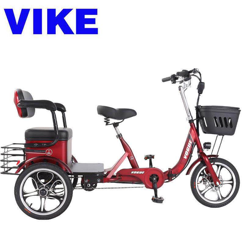 维克外贸锂电瓶脚蹬踩踏休闲折叠助力双人老年代步电动三轮车