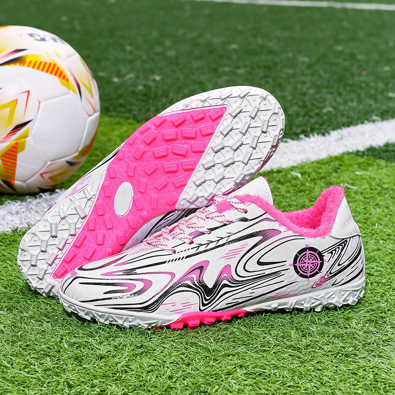 冬季新款足球鞋男女小学生tf碎钉加绒保暖球鞋中大童初中生训练鞋