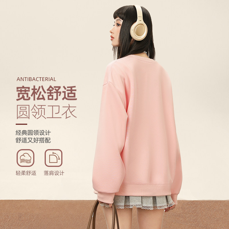 雪中飞粉色卫衣女春季2026新款外套学生甜酷风韩系无帽长袖上衣PC