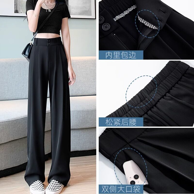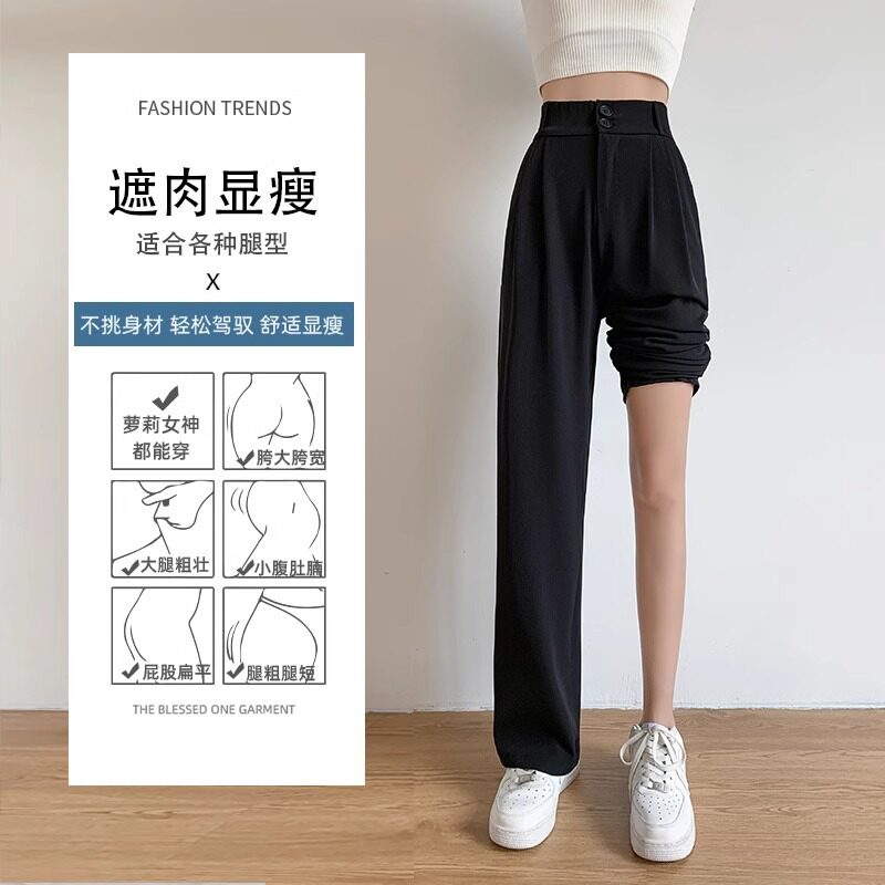 灰色西装裤女款裤子春秋2026新款高级感垂感小个子直筒窄版阔腿裤